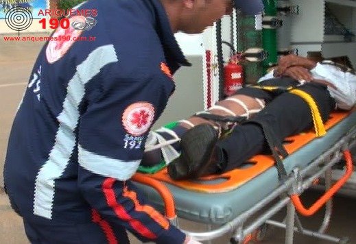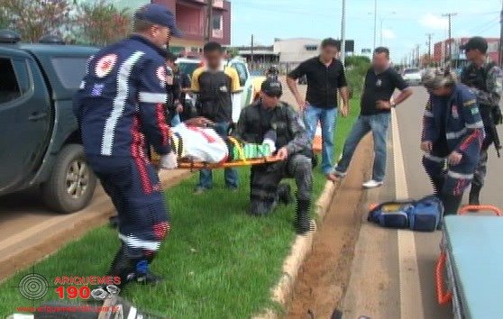 Por volta das 10h15m desta sexta-feira, 15/05, a guarnição da PeTran – Patrulha de Trânsito e a equipe do SAMU – Serviço de Atendimento Móvel de Urgência foram acionadas a comparecer na Avenida Jamari, Setor 01 de Ariquemes, onde teria acontecido um acidente de trânsito entre uma motocicleta e uma camionete. De imediatos os Policiais e os socorristas foram até o local onde se depararam com o condutor da motocicleta da marca Honda, modelo Fan de cor Preta caído ao solo. A vítima apresentava-se consciente, mas sentia fortes dores na perna direita. Foi utilizado de um colar cervical e de uma tala na perna pra imobilizar o homem e o conduzir ao Hospital Regional de Ariquemes. No local dos fatos os Policiais Militares colheram as informações que dão conta de que o condutor da camionete transitava sentido a Avenida Tancredo Neves e se preparava para realizar um retorno, quando o condutor da motocicleta que transitava em mesmo sentido do veículo não conseguiu frear e para não atingir a traseira do carro se jogou no meio fio da Avenida, vindo a causar uma fratura na perna do motociclista. Diante das informações a guarnição da PeTran se dirigiu a Delegacia de Polícia Civil de Ariquemes para o registro do BOAT- Boletim de Ocorrência de Acidente de Trânsito, para a posterior tomada de providências cabíveis constantes no CTB – Código de Trânsito Brasileiro.