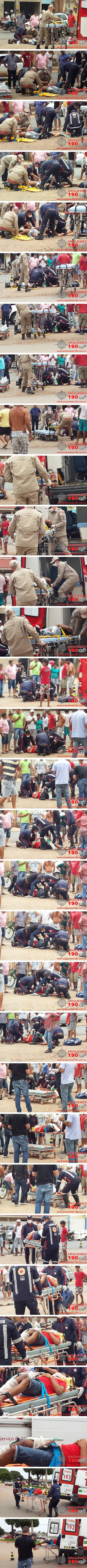 Na manhã deste sábado, 04/10 por volta das 11h40m, um grave acidente de trânsito ocorrido no cruzamento da Av. Jaru com a Av. Candeias deixou dois rapazes motociclistas feridos, sendo um com possível fratura na perna. Assim que recebeu o chamado a Central de Operações do Corpo de Bombeiros / Samu encaminhou de imediato uma equipe de socorristas do serviço de Atendimento Móvel de Urgência (SAMU) e outra do Corpo de Bombeiros, as quais rapidamente chegaram ao local para prestar o atendimento de primeiros socorros às vítimas. Um dos rapazes apresentava escoriações na perna e corpo e o outro um ferimento mais grave na perna esquerda com possível fratura. Os socorristas utilizaram de Talas e Colar Cervical para imobilizar as vítimas que posteriormente foram conduzidas ao Hospital Regional para receberem atendimento médico especializado. Segundo relatos de populares que presenciaram o acidente, informaram à equipe de reportagens do Canal 35 e Site Ariquemes190 que motociclista e carona trafegavam a Av. Jaru conduzindo a motocicleta marca Honda, modelo Fan de cor preta, quando não percebera o veículo marca Chevrolet, modelo Celta de cor branco que realizava o retorno. O motociclista não conseguiu frear a moto, havendo a colisão lateral. O motorista do veículo permaneceu no local para prestar o devido socorro às vítimas e a motocicleta ficou na via no aguardo da chegada da Polícia Militar para realizar a remoção e registro do Boletim de Ocorrência de Acidente de Trânsito (BOAT).
