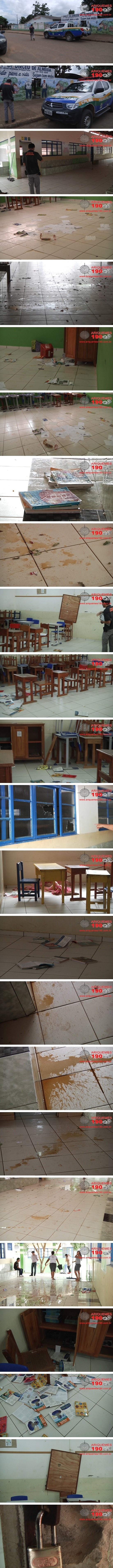 Na manhã desta sexta-feira, 02/01, ao chegar a uma escola localizada na 7ª Rua do Setor 06 de Ariquemes, os funcionários perceberam que havia uma grande bagunça. Ao averiguar o local, os servidores perceberam que havia bebida alcoólica derramada por todo o local. Nas salas de aula estavam jogados materiais escolares, vidros quebrados, cortinas rasgadas, livros estragados, além de armários e quadros quebrados. Tudo indica que um grupo de marginais invadiu a escola, onde “fizeram a festa” e deixaram a sujeira para as servidoras públicas limparem. Mesmo sendo um dia de descanso, as zeladoras da escola foram trabalhar para deixar tudo limpo para as rematrículas que acontecerão na próxima segunda-feira, 05/01. A Polícia Militar compareceu no local e coletou informações para o registro do Boletim de Ocorrência Policial. A Perícia Técnica também foi acionada onde realizou os trabalhos de praxe, para que o caso seja investigado e os vândalos sejam presos e punidos pela infração cometida.