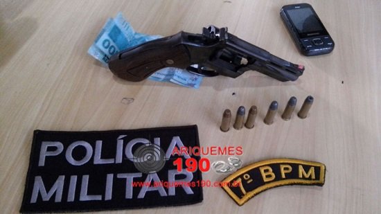 Por volta das 17h00m desta sexta-feira, 09/04, a guarnição da Polícia Militar realizava patrulhamento pela Avenida Tancredo Neves no centro da cidade de Ariquemes, quando em dado momento suspeitou de dois homens em uma motocicleta e realizaram abordagem de rotina. Na revista pessoal os Militares localizaram com o elemento que estava na garupa da motocicleta marca Yamaha, modelo YBR de cor preta, uma arma de fogo tipo revólver calibre 38 com seis munições intactas. Ao consultar a documentação da motocicleta, os PM’s constataram que o recolhimento do imposto referente ao licenciamento anual da mesma estava atrasado. Diante dos fatos os elementos, juntamente com a motocicleta e a arma de fogo com a munição foram entregues na Delegacia de Polícia Civil de Ariquemes, onde foram apresentados ao Delegado de plantão para prestarem esclarecimentos. Foi registrado o Boletim de Ocorrência Policial para que sejam tomadas as providências que o caso requer.