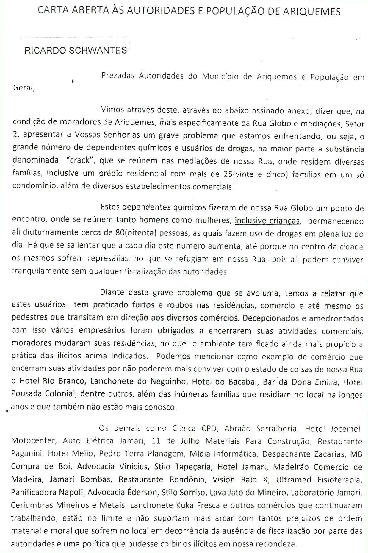 O abaixo assinado foi entregue no Canal 35, onde os moradores e empresários cobram providencia das autoridades . Leia na Integra.