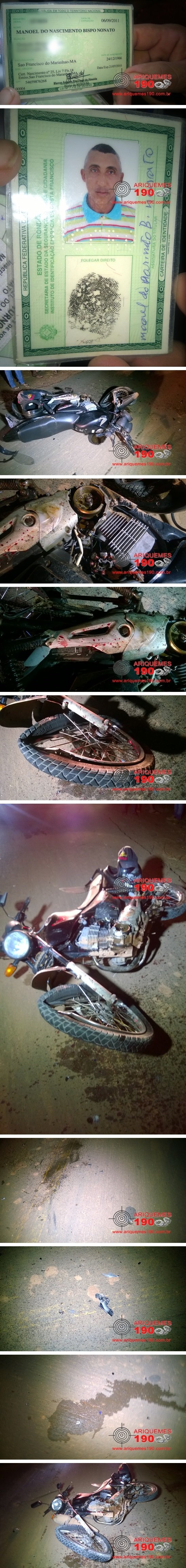 O gravíssimo acidente de trânsito que veio a ceifar a vida de Manoel do Nascimento Bispo Nonato de 48 anos de idade, aconteceu por volta das 19h40m deste sábado, 09/05. A guarnição da Polícia Militar foi informada que havia acontecido um grave acidente no Km-03 da RO-257 e que a vítima ao dar entrada no pronto socorro do Hospital Municipal não havia resistido e teria vindo a óbito. Segundo informações o acidente pode ter sido uma colisão e o segundo condutor fugiu sem prestar socorro à vítima. A violência do impacto foi tamanha que a vítima obteve várias fraturas pelo corpo e as vísceras ficaram expostas. Manoel foi socorrido pela equipe do Serviço de Atendimento Móvel de Urgência (SAMU) e do Corpo de Bombeiros, contudo, devido à gravidade dos ferimentos não resistiu e veio a óbito. A Perícia Técnica compareceu no local onde realizou os trabalhos de praxe. Foi registrado o Boletim de Ocorrência Policial (BOP) sob n° 3996/2015 e o Boletim de Ocorrência de Acidente de Trânsito (BOAT) sob n° 238/2015.