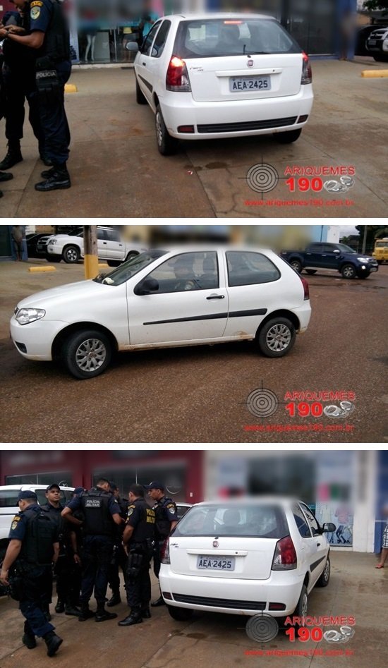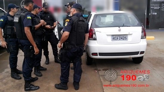 No fim da tarde desta segunda-feira, 11/05, a guarnição da Polícia Militar foi acionada a comparecer em um auto posto localizado na Avenida JK no centro de Ariquemes, pois segundo informações no local havia dois elementos em um carro roubado ingerindo bebida alcoólica. De imediato os Militares se deslocaram ao local onde localizaram o veículo da marca Fiat, modelo Pálio de cor branco. Ao realizar a consulta veicular ao Departamento Estadual de Trânsito (DETRAN), os Militares constataram que a placa pertencia a outro veículo. Diante da suspeita os Militares verificaram o veículo e constataram que o mesmo havia sido roubado em Porto Velho. Ao serem indagados, os elementos que estavam com o veículo negaram a posse do bem ilícito, contudo na revista pessoal foi localizada a chave do veículo em poder de um dos agentes. Diante dos fatos a dupla foi conduzida para a Delegacia de Polícia Civil de Ariquemes, onde foi registrado o Boletim de Ocorrência Policial, para a tomada das providências necessárias ao caso.