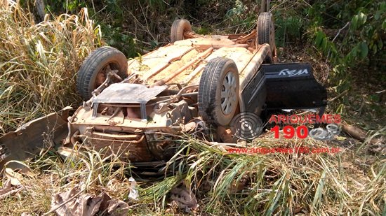 Por volta das 11h00m desta terça-feira, (25/08), a Polícia Rodoviária Federal da (PRF) foi acionada a comparecer na BR-364 em Ariquemes, pois segundo informações no local havia um carro de marca Fiat, modelo Uno Way de cor preto que teria capotado, deixando quatro vítimas feridas. De imediato a guarnição compareceu até o local onde pode constatar a veracidade das informações, encontrando o carro capotado na lateral da via e uma das vítimas sentada no meio fio. A guarnição entrou em contato com o rapaz, o qual sofreu apenas ferimentos leves, e relatou aos PRFs que estava transitando na BR, quando passou por um buraco, perdeu o controle da direção do veículo e veio a capotar. As outras três vítimas foram socorridas por populares ao Hospital Regional de Ariquemes e o condutor aguardou no local até a chegada do Serviço de Atendimento Móvel de Urgência (SAMU) para também ser encaminhado ao Hospital Regional. Diante dos fatos foi registrado o Boletim de Ocorrência Policial (BOP) e o Boletim de Ocorrência de Acidente de Trânsito (BOAT), para posterior tomada de providências constantes no Código de Trânsito Brasileiro (CTB).