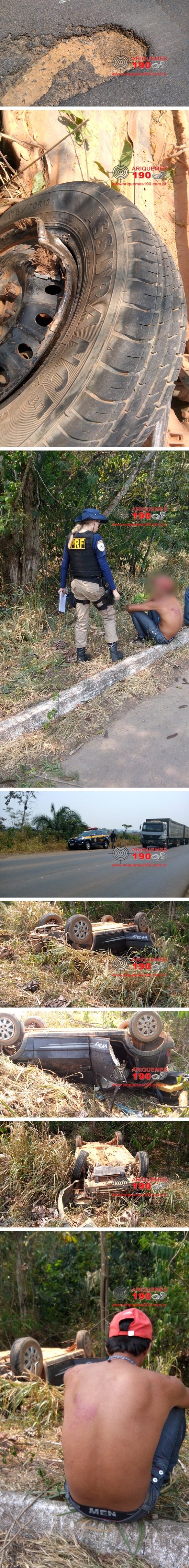 ARIQUEMES: Após passar por buraco condutor perde o controle e capota na BR-364