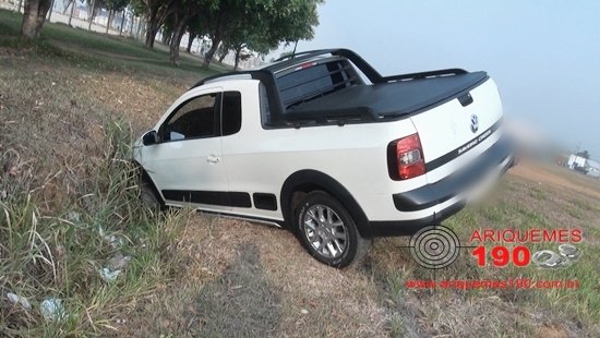 Na manhã deste sábado, 26/09, a guarnição da Polícia Militar foi acionada a comparecer em frente ao novo ginásio de esportes Alberi Ferraço, localizado ao lado da pista de caminhada no Bairro Institucional em Ariquemes, pois segundo informações no local havia acontecido um acidente de trânsito. De imediato os Militares compareceram no local, onde ao chegar se depararam com o veículo da marca Volkswagen, modelo Saveiro de cor branco caído em uma vala. Ao procurar o proprietário do veículo ninguém se apresentou como tal e ao serem indagados, populares não souberam informar o rumo que o condutor havia tomado após o acidente. Dada as suspeitas os PM's realizaram consulta à placa do veículo, porém o mesmo não apresentou nenhuma restrição.