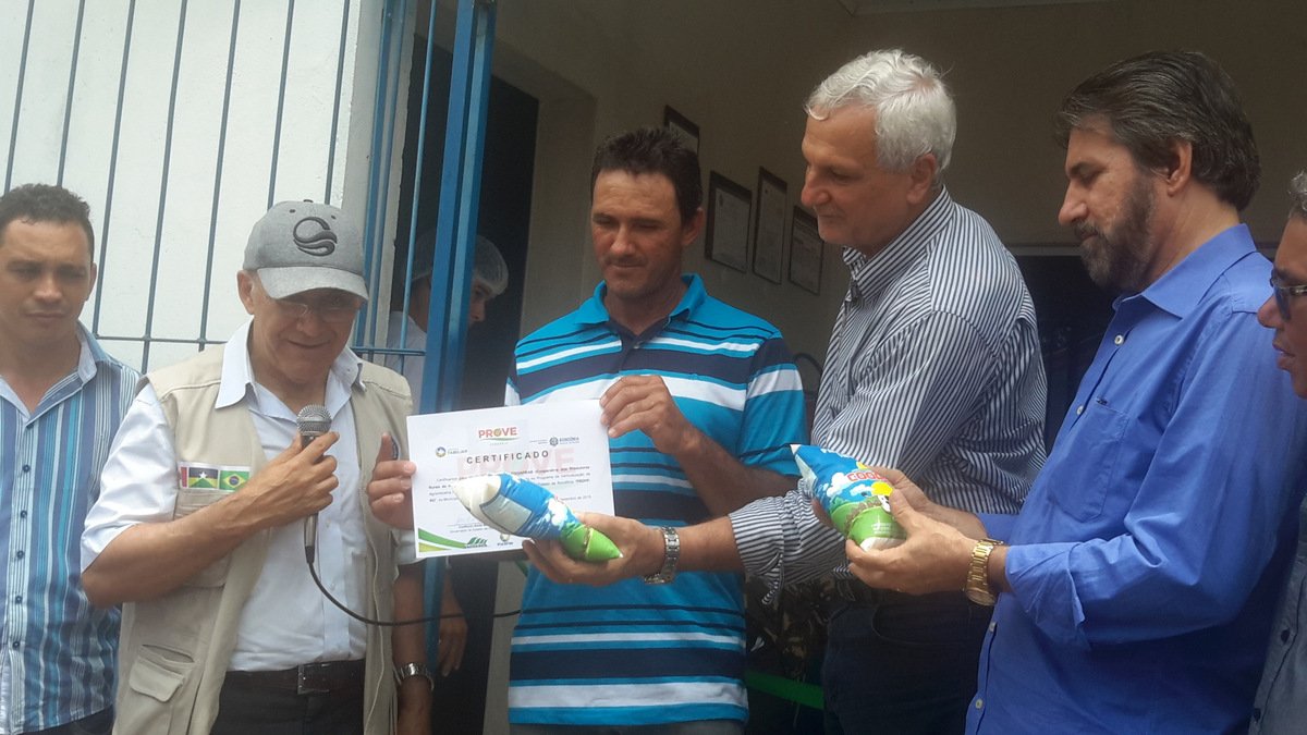 O deputado Adelino Follador e governador Confúcio Moura também inauguraram oficialmente uma agroindústria de pasteurização de leite in natura nossa ação para aumentar a renda do homem do Campo destinei 125 mil reais para Cooprab mais 60 famílias beneficiadas