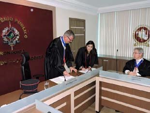 A sessão solene de posse foi conduzida pelo Procurador-Geral de Justiça, Airton Pedro Marin Filho, que preside o Conselho Superior do MP/RO. Coube ao Procurador de Justiça Ildemar Kussler conduzir o compromisso da nova integrante do Parquet. Depois de ser declarada empossada pelo presidente do Conselho Superior, Clícia recebeu as credenciais da Instituição.