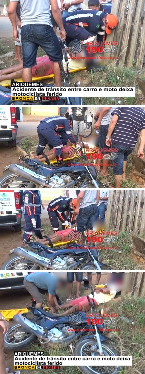 Por volta das 09h12min deste domingo, (06/12), uma equipe do Serviço de Atendimento Móvel de Urgência (SAMU) foi acionada a comparecer próximo ao Parque Tropical II em Ariquemes, pois segundo informações recebidas havia acontecido um acidente de trânsito envolvendo um carro de marca Fiat, modelo Uno de cor preto e uma motocicleta de marca Honda, modelo Titan de cor preta. Os socorristas de pronto compareceram até o local indicado, onde ao chegar se depararam com a vítima caída ao solo apresentando escoriações pelo corpo. Os socorristas iniciaram os procedimentos de primeiros socorros à vítima, a qual posteriormente foi encaminhada ao Hospital Regional de Ariquemes onde recebeu atendimento Médico Especializado. Segundo informações colidas no sobre o que havia acontecido, ambos condutores trafegavam pelo mesmo sentido em uma das vias próximo ao Parque Tropical II, quando houve a colisão lateral, fazendo com que o condutor da motocicleta caísse ao solo sofrendo lesões. Em entrevista concedida ao Canal 35 para o programa Bronca da Pesada, o socorrista Washington relatou que a vítima se queixava de muitas dores no corpo, sendo que não apresentava ferimentos graves.