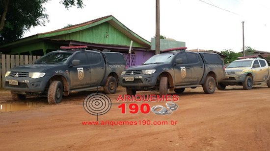 Na tarde desta quarta-feira, 03/02, a guarnição da Força Tática da Polícia Militar, foi recebida a balas por peões de fazenda. O fato aconteceu na área rural do município de Cujubim, Linha C-114, a 60 Km da cidade, município este que fica à 118 Km de Ariquemes, onde pela manhã a equipe se deslocou até a localidade para dar sequência às buscas a um jovem que supostamente estariam desaparecido, onde dia 01/02, um corpo teria sido encontrado carbonizado dentro de um carro queimado, o qual ainda não teria sido identificado. Familiares da vítima desaparecida e moradores da localidade informaram aos policiais que realizavam buscas pela região, que teriam avistado homens em duas caminhonetes trafegando por ali no dia dos fatos e perguntavam pelas vítimas desaparecidas e que provavelmente ainda estariam naquela Linha. Diante da suspeita a equipe iniciou patrulhamento na Linha C-114, momento em que já próximos da fazenda Tucumã, a qual estava invadida por grileiros sem terrar e havia sido realizada recentemente reintegração de posse, se depararam com quatro pessoas e uma caminhonete marca Chevrolet, modelo S-10 de placa OHU-1290, a qual os suspeitos se recusaram a abri-la, sendo necessário dilacerar os vidros. Ao averiguar o interior do veículo foi localizado armamento de grosso calibre tipo uma submetralhadora 9mm de origem do Exército Boliviano e uma espingarda calibre .12, além de munições. Ao realizar uma varredura em um barracão onde as pessoas estavam foi localizada uma espingarda calibre .36, outra espingarda calibre.12 e um revólver calibre .38 e mais munições de diversos calibres. Um dos elementos se identificou como sendo 3° SGT PM Moises Ferreira de Souza (da reserva), contudo ao ser colocado na viatura para condução, este agrediu um PM da equipe da Força Tática, o que lhe causou um ferimento no pé direito. Neste momento o indivíduo que se identificou anteriormente como Sgt. da PM, iniciou fuga a pé rumo a mata, onde este se juntou a um bando que estava homiziado e armado, os quais começaram a atirar contra os policiais. Na fuga o sujeito deixou cair um objeto, o qual ao ser verificado constatou que tratava-se de uma espingarda calibre .28 que estava com uma munição deflagrada. Os Policiais continuaram a ser alvo de vários outros disparos, sendo que o bando armado estava visivelmente em maior número que os PMs. Diante disso os Policiais recuaram à sede da fazenda, onde solicitaram reforços ao Quartel de Ariquemes e foram resgatados do local pela equipe aérea Falcão 2 da PM. Foram conduzidos para a Delegacia Geral de Polícia Civil de Ariquemes Cristovão Rodrigues, 44 anos, Valdemir Pires dos Santos, 67 anos e Daniel Francisco dos Santos, 51 anos, juntamente com as seis armas apreendidas e a vasta munição, onde ao realizar consulta nominal, para este último (Daniel Francisco) foi encontrado Mandado de Prisão em aberto ao seu desfavor, registrado sob número 82930-72.2003.8.22.0005.0001, expedido pelo MM. Juiz de direito Dr. Valdecir Ramos de Souza da 1ª Vara Criminal da comarca de Ji-Paraná/RO pela prática de crime de Homicídio. Foram registradas as Ocorrências n° 1149/2016 e n° 1156/2016, para que as providências cabíveis quantos aos fatos sejam tomadas. Esta área faz parte da grande região do Vale do Jamari que têm sofrido constantes conflitos agrários nos últimos meses e não estão descartados novos conflitos. Mais informações sobre estes fatos no programa Bronca da Pesada desta quinta-feira, 04/02, que vai ao ar a partir das 11 horas com reprise às 20 horas pela TV do Povo – Canal 35.