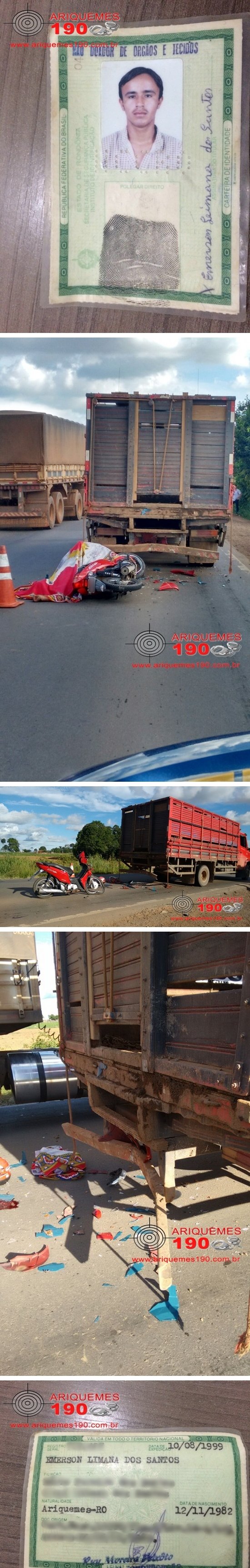 ARIQUEMES: Motociclista morre ao colidir com traseira de caminhão na Br-364