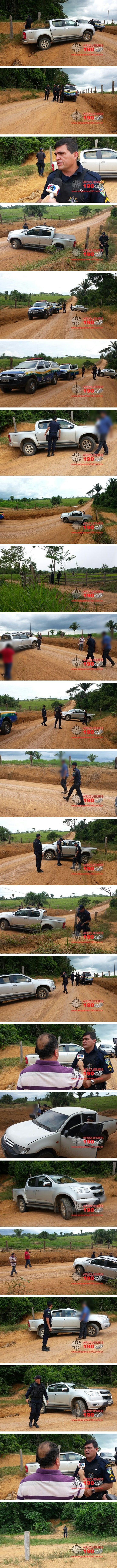 Por volta das 14h30min desta segunda-feira, (15/02), o caseiro de uma fazenda localizada no Km-18 da BR-421, estava trabalhando quando seu filho o alertou sobre a presença de dois elementos desconhecidos na propriedade. Cada marginal portando uma arma de fogo do tipo revólver de calibre 38 mm pegou o caseiro e o levaram para dentro da residência, onde estavam a esposa e o filho da vítima. No momento em que os bandidos procuravam armas e dinheiro, o proprietário da fazenda chegou em uma caminhonete da marca Chevrolet, modelo S-10 e também foi rendido. O caseiro, o patrão, a esposa e o filho foram amarrados com fios e cobertos com um lençol. Depois que os elementos pegaram celulares, relógios e pouco mais de R$ 500,00 em dinheiro, se evadiram do local na caminhonete em que o proprietário da área havia chegado. O caseiro se desamarrou e acionou as Polícias Militares de Monte Negro e de Ariquemes, as quais de imediato se deslocaram para a fazenda, sendo que o helicóptero Falcão 02 localizou a caminhonete roubada se deslocando pela Linha C-50, que dá acesso ao Garimpo do Massangana e a cidade de Buritis. Quando os elementos perceberam que estavam sendo seguidos pela aeronave, tentaram uma manobra com o veículo para voltar à RO-421, mas as rodas traseiras caíram em uma valeta na beira da estrada e a dupla se evadiu para dentro da mata, deixando o carro no local. Os Policiais Militares: Cleílton, Hamer, Zamarchi e Marcon comandados pelo Cabo Reginaldo realizaram buscas pela região com apoio do Capitão Braguim, mas a forte chuva atrapalhou a operação. Mediante os fatos a caminhonete e as vítimas foram apresentadas a autoridade plantonista na Delegacia de Polícia Civil de Ariquemes, onde foi registrada ocorrência de Roubo e após os registros necessários o veículo restituído ao seu verdadeiro proprietário.