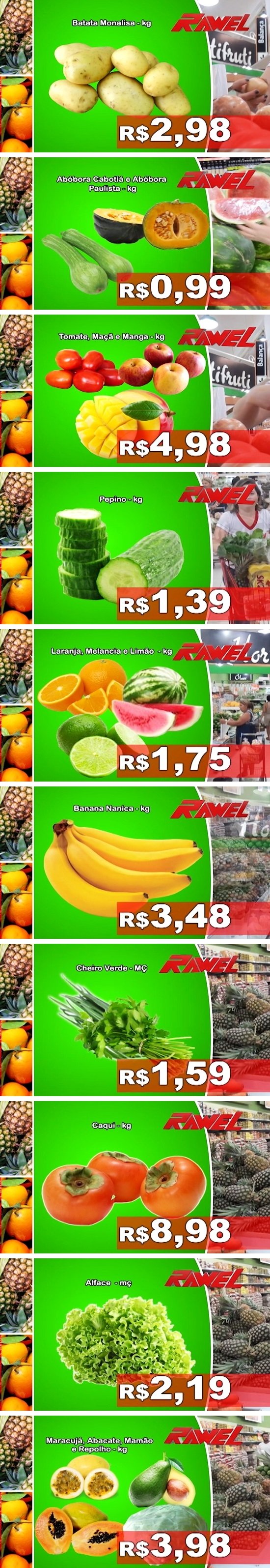No Rawel todos os dias é dia de comprar mais barato! O hortifrúti é de primeira com frutas e legumes fresquinhos, para deixar a sua mesa cheia de cores: