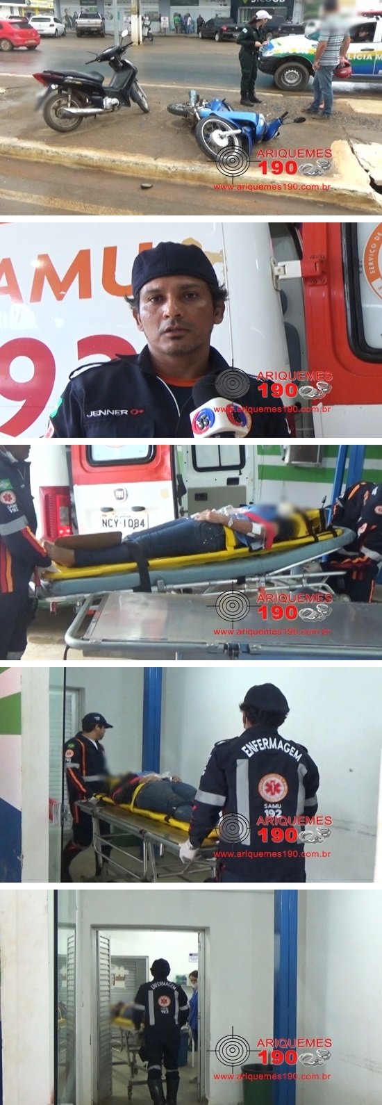 Por volta das 11h10min desta quinta-feira, 25/02, uma Equipe do Serviço de Atendimento Móvel de Urgência (SAMU) foi acionada a comparecer na Av. Tancredo Neves em Ariquemes, pois segundo informações havia ocorrido um acidente de trânsito. No momento em que chegaram ao local os socorristas constataram a veracidade das informações, se deparando com duas mulheres caídas ao solo. Segundo informações levantadas no local, as mulheres seguiam a via no mesmo sentido, quando em dado momento o condutor do veículo marca Fiat, modelo Strada adentrou o retorno. Na tentativa de evitar a colisão, a condutora da motoneta freou e acabou colidindo com outra motoneta. As duas mulheres caíram em cima do canteiro, onde uma das vítimas aparentemente obteve fratura em um dos dedos e escoriações pelo corpo, sendo que esta foi encaminhada para o Hospital Regional de Ariquemes para receber atendimento médico especializado. Já a outra vítima não teve ferimentos graves.