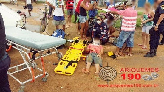 Por volta das 10h50min deste domingo, (28/02), a guarnição da Polícia Militar composta pelo Cabo Cartaxo, Soldado Buss e Soldado R. Anderson, foi acionada via Central de Operações a comparecer na Avenida Jaru com 7ª Rua no Setor 4 em Ariquemes, onde segundo informações havia ocorrido um acidente de trânsito. Quando chegaram ao local os policiais constataram a veracidade das informações, se deparando com um automóvel da marca Chevrolet, modelo classic live e uma motocicleta da marca Yamaha, modelo Factor no local. Segundo o condutor do carro, ele estava trafegando pela 7ª Rua do Setor 04 sentido Av. Jaru, quando ao entrar na Av. Jaru não percebeu a motocicleta que vinha pela Av. Jaru sentido Setor 08, momento em que houve a colisão de ambos os veículos. As vítimas que estavam na motocicleta apresentavam ferimentos graves e escoriações resultantes do violento impacto. Diante dos acontecimentos a equipe do Serviço de Atendimento Móvel de Urgência (SAMU) foi acionada a comparecer no local, onde estiveram socorrendo as duas vítimas e realizando o atendimento de primeiros socorros. Em seguida as vítimas foram encaminhadas para o Hospital Regional de Ariquemes para receber atendimento médico especializado. A Perícia Técnica de Plantão foi acionada e compareceu ao local, onde realizou seus trabalhos de praxe. Diante dos fatos o Boletim de Ocorrência Policial (BOP) sob o nº 1998/2016 e o Boletim de Ocorrência de Acidente de Trânsito (BOAT) sob o nº 70/2016 foram registrado na 1ª Delegacia Geral de Polícia Civil de Ariquemes, para serem tomadas as devidas providências. Em entrevista ao Canal 35 para o Programa Bronca da Pesada, a Técnica de Enfermagem Simone relatou que o choque foi tão violento que causou muitas escoriações nos membros inferiores e cortes nos membros superiores de ambos os jovens, contundo aparentemente não possuíam nenhuma fratura.