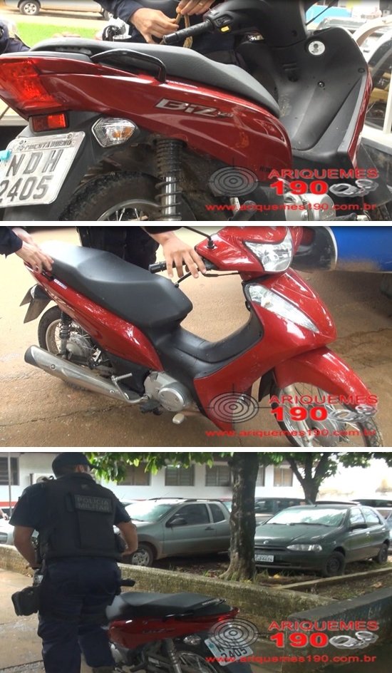 Por volta das 12h50min desta terça-feira (08/03), a guarnição da Polícia Militar composta pelo Cabo da Silva e Soldado F. Almeida foi acionada via Central de Operações para comparecer na Rua Dom Pedro II no Bairro Monte Cristo em Ariquemes, pois segundo informações havia um veículo abandonado. Quando os policiais chegaram ao local, foi constatada a veracidade das informações. Os policiais se depararam com uma motoneta da marca Honda modelo Biz de cor vermelha com placa NDH-2405 de Pimenta Bueno que havia sido roubada pela manhã conforme o Boletim de Ocorrência Policial (BOP) sob o nº 2350/2016. Diante do exposto, o veículo foi conduzido para a 1ª Delegacia Geral de Polícia Civil de Ariquemes, para ser apresentado a autoridade plantonista. Diante dos fatos, foi registrado o BOP sob o nº 2353/2016 para serem tomada as devidas providências.