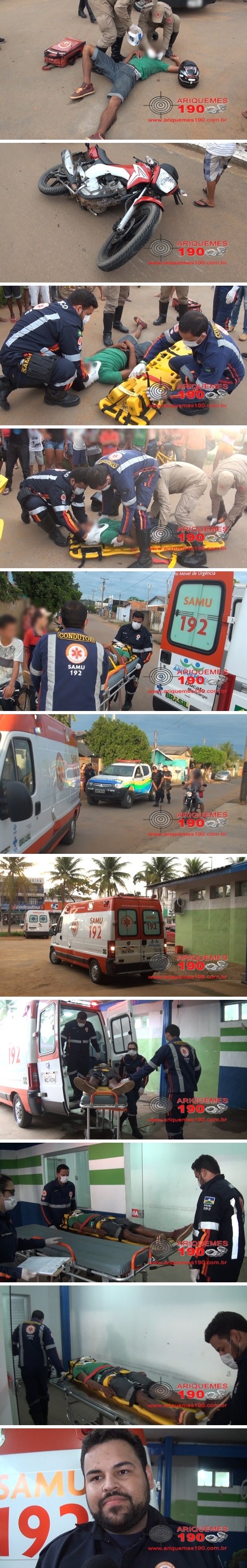 Por volta das 17h45min deste sábado (12/03), as Equipes do Corpo de Bombeiros e do Serviço de Atendimento Móvel de Urgência (SAMU) foram acionadas a comparecer na 3ª Rua do Setor 09 de Ariquemes, onde segundo informações havia ocorrido um acidente de trânsito. Quando os Bombeiros chegaram ao local se depararam com a vítima caída ao solo, logo começaram o procedimento de primeiros socorros com o auxílio da equipe do SAMU que chegou logo depois. Após prestarem o atendimento pré-hospitalar (APH) socorristas do SAMU encaminharam a vítima para o Hospital Regional de Ariquemes para atendimento médico especializado. Segundo informações levantadas no local do acidente, o motociclista teria colidido com o caminhão, felizmente não teve ferimentos grave devido o uso do capacete. Em entrevista concedida ao Canal 35 para o Programa Bronca da Pesada e site Ariquemes 190 o Dr. Mauro Lopes relatou que o nível de consciência do paciente estava um pouco alterado, porém aparentemente ele estava instável não apresentando sérias preocupações.