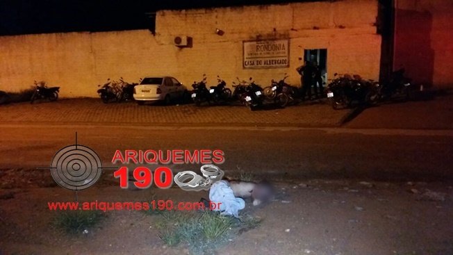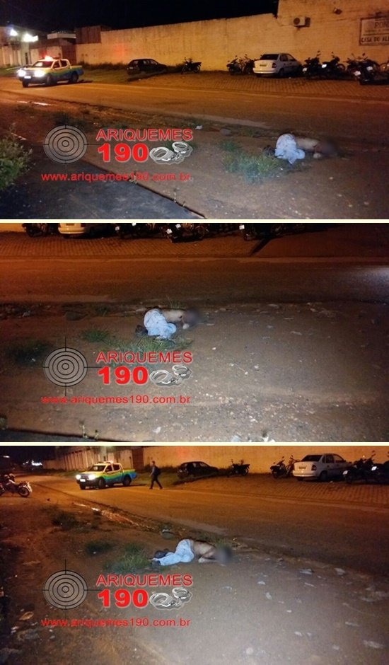 Por volta das 20h40m desta sexta-feira, 18/03, a guarnição da Polícia Militar realizava patrulhamento pela Rua Caraíbas, em frente à Casa do Albergado localizada no Setor 12 de Ariquemes, quando em dado momento os Militares avistaram duas pessoas correndo e logo em seguida ouviram vários disparos de arma de fogo. Os PM’s notaram que a pessoa que estava atrás empunhava uma arma de fogo e atirava. Foram vários disparos, os quais não foram possíveis contabilizar. De imediato a guarnição aproximou a viatura do infrator para realizar a abordagem e nesse momento foi constatado pelos Policiais que se tratava de um crime de homicídio. A guarnição ainda realizou alguns disparos no intuito de cessar o intento do agente, porém logo em seguida os suspeitos empreenderam fuga em uma motocicleta de cor escura. A guarnição fez o acompanhamento da dupla, sendo possível visualizar o momento em que o garupa da moto caiu do veículo. Os Militares realizaram a abordagem e constataram que o suspeito estava baleado na perna direita, sendo que o segundo elemento fugiu do local tomando rumo ignorado. Durante a abordagem o suspeito que estava ferido se apresentou como sendo Agente Penitenciário. A equipe do Serviço de Atendimento Móvel de Urgência (SAMU) foi acionada onde prestou socorro ao ferido e conduziu o mesmo ao Pronto Socorro do Hospital Municipal. A Perícia Técnica também esteve no local do crime onde foi constatado que a vítima se tratava de Ueliton Ribeiro Vaz de 33 anos de idade vulgo “Zói”. Após realizados os trabalhos de praxe o corpo foi removido do local pela Funerária de plantão para posteriores trabalhos de sepultamento. Ueliton cumpria Pena pelo crime de roubo cometido em 05/11/2013. O Boletim de Ocorrência Policial (BOP) sob n° 98/2016 foi registrado na 2ª Delegacia de Polícia Civil de Ariquemes, onde o crime está sendo investigado.