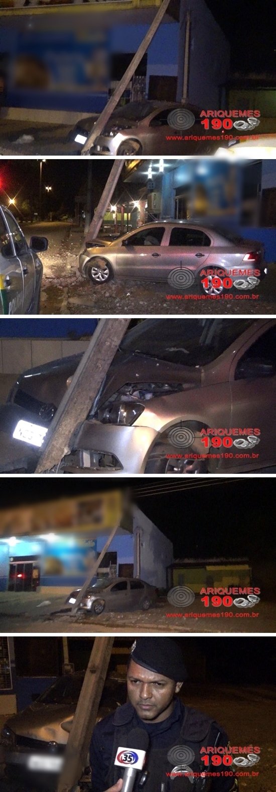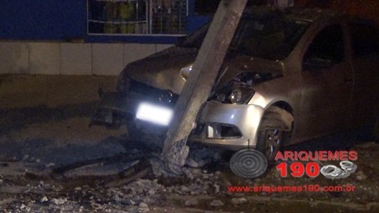 ARIQUEMES: Motorista bate o carro em poste e foge abandonando o veículo
