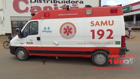 ARIQUEMES: Mulher é socorrida pelo SAMU após acidente de moto na Av. Capitão Silvio