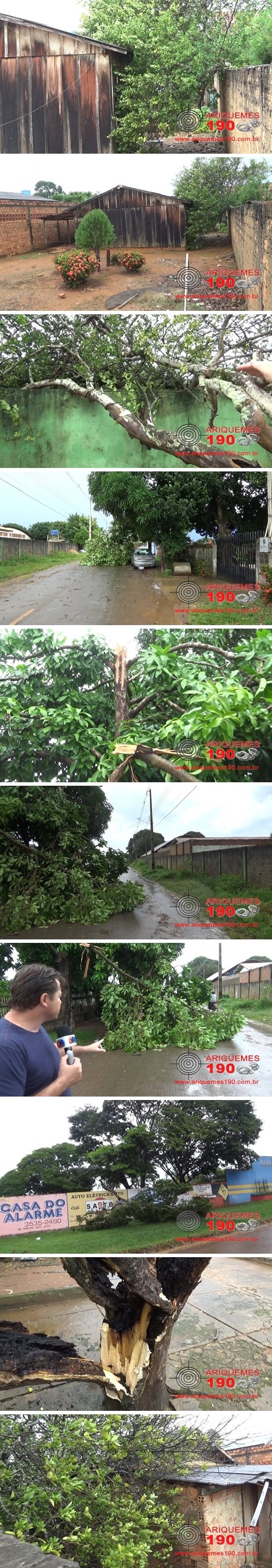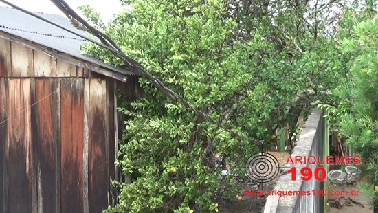 No início da tarde desta segunda-feira 04/04 uma forte chuva atingiu o município de Ariquemes e junto com a chuva vieram também os prejuízos. Na 7ª Rua do Setor 02 galhos de uma mangueira e de um pé de jambo despencaram durante a ventania e por pouco não atingiram um carro que estava estacionado na lateral da via. Já na 12ª Rua também do Setor 02 um pé de tangerina caiu, atingiu a rede elétrica de uma residência e caiu em cima de uma residência que estava vazia. A equipe de resgate do Corpo de Bombeiros realizou o mapeamento da cidade onde havia riscos e onde aconteceram quedas de árvores e constataram que felizmente ninguém ficou ferido.