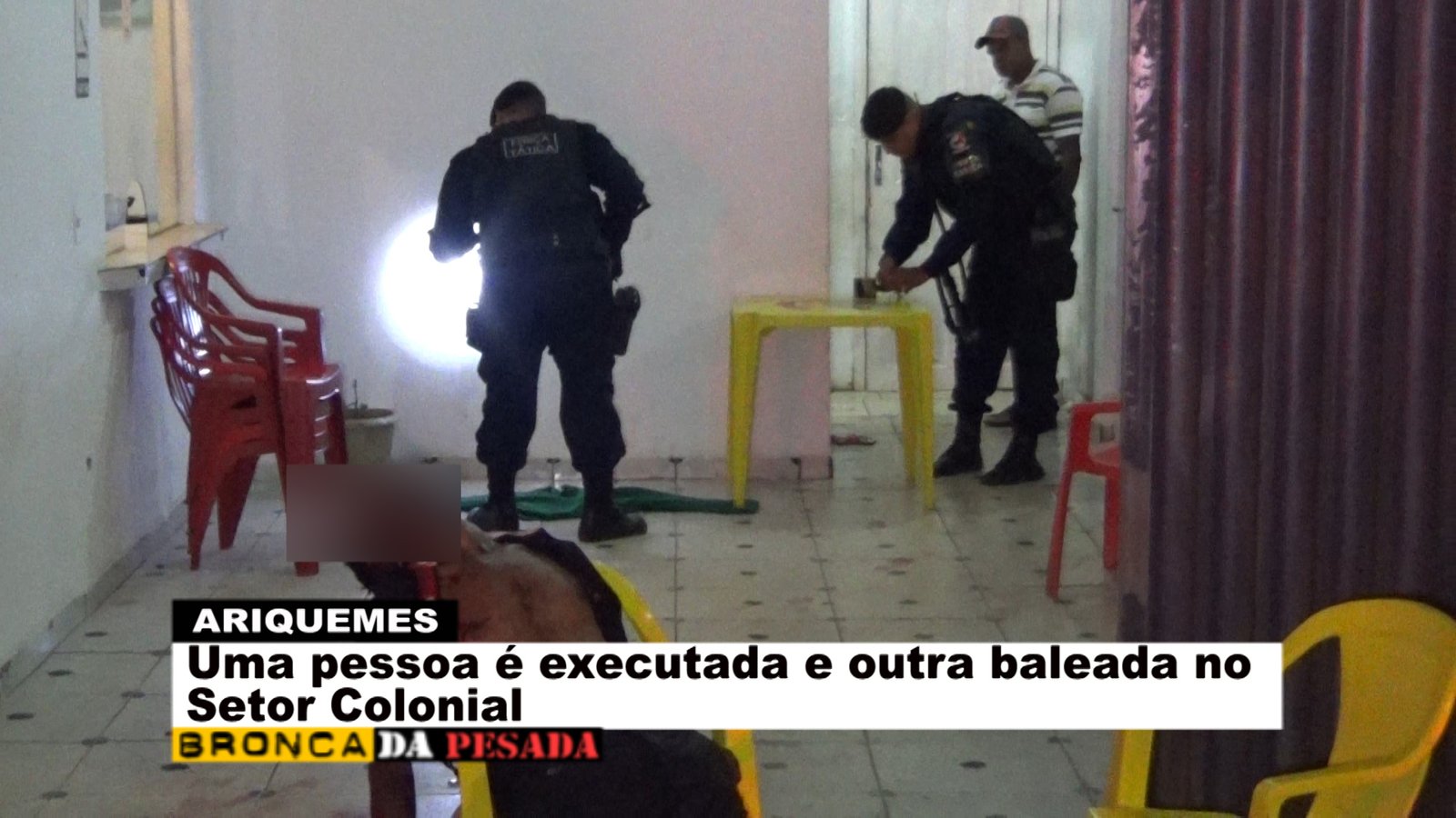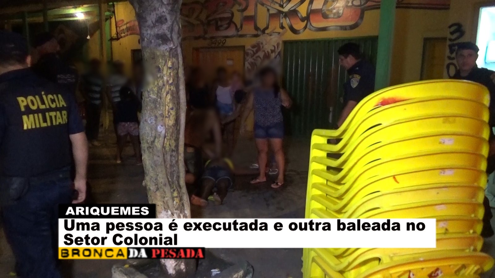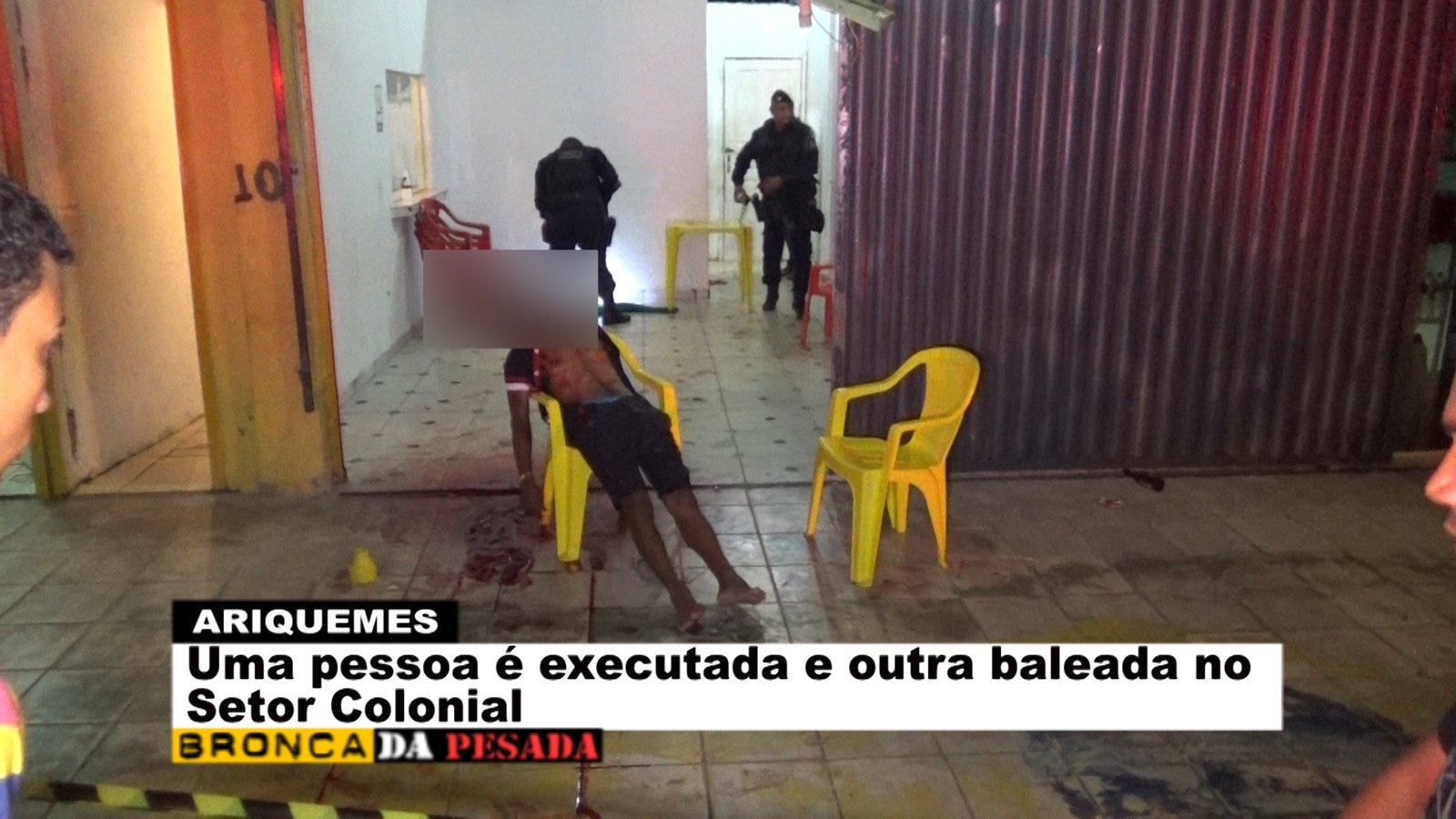 Um crime bárbaro que chocou os moradores do Bairro Colonial foi registrado na madrugada deste domingo, onde a vítima Josuel Lopes de Oliveira, 38 anos, foi executado com cinco disparos de arma de fogo, sendo um na boca. Já se passavam 15 minutos do dia 10/04, quando por determinação da Central de Operações a guarnição da Polícia Militar CPL 54, composta pelos Policiais Cabo Cartaxo e Soldados Bruno e Nunes, foi acionada a deslocar-se à Rua Cassimiro de Abreu, n° 3507 em Ariquemes, em um estabelecimento comercia do tipo bar, onde no local teriam ocorrido disparos de arma de fogo. Ali chegando os Policiais constataram a veracidade das informações, visualizando Josuel sentado em uma das cadeiras do bar alvejado a tiros já sem vida. Uma funcionária do estabelecimento que estava no local no momento do fato também encontrava-se ferida por disparo de arma de fogo em sua perna esquerda. De imediato foram acionadas duas equipes do Serviço de Atendimento Móvel de Urgência (SAMU), as quais constataram o óbito de Josuel e concentraram o atendimento à mulher baleada. Informações do Boletim de Ocorrência Policial registrado na Delegacia de Repressão aos Crimes Contra a Vida sob n° 128/2016, relatam que dois indivíduos em uma motoneta marca Honda, modelo Biz de cor preta chegaram ao bar e sem proferir uma palavra abriram fogo contra Josuel que estava sentado em uma das cadeiras do bar ingerindo bebida alcoólica. Um dos disparos efetuados contra Josuel atingiram a funcionária que estava dentro do estabelecimento. O Perito Gutemberg da Polícia Técnica esteve no local realizando os trabalhos de praxe e localizou na cena do crime cápsulas de calibre .40. Após os trabalhos o corpo foi liberado para os serviços fúnebres.