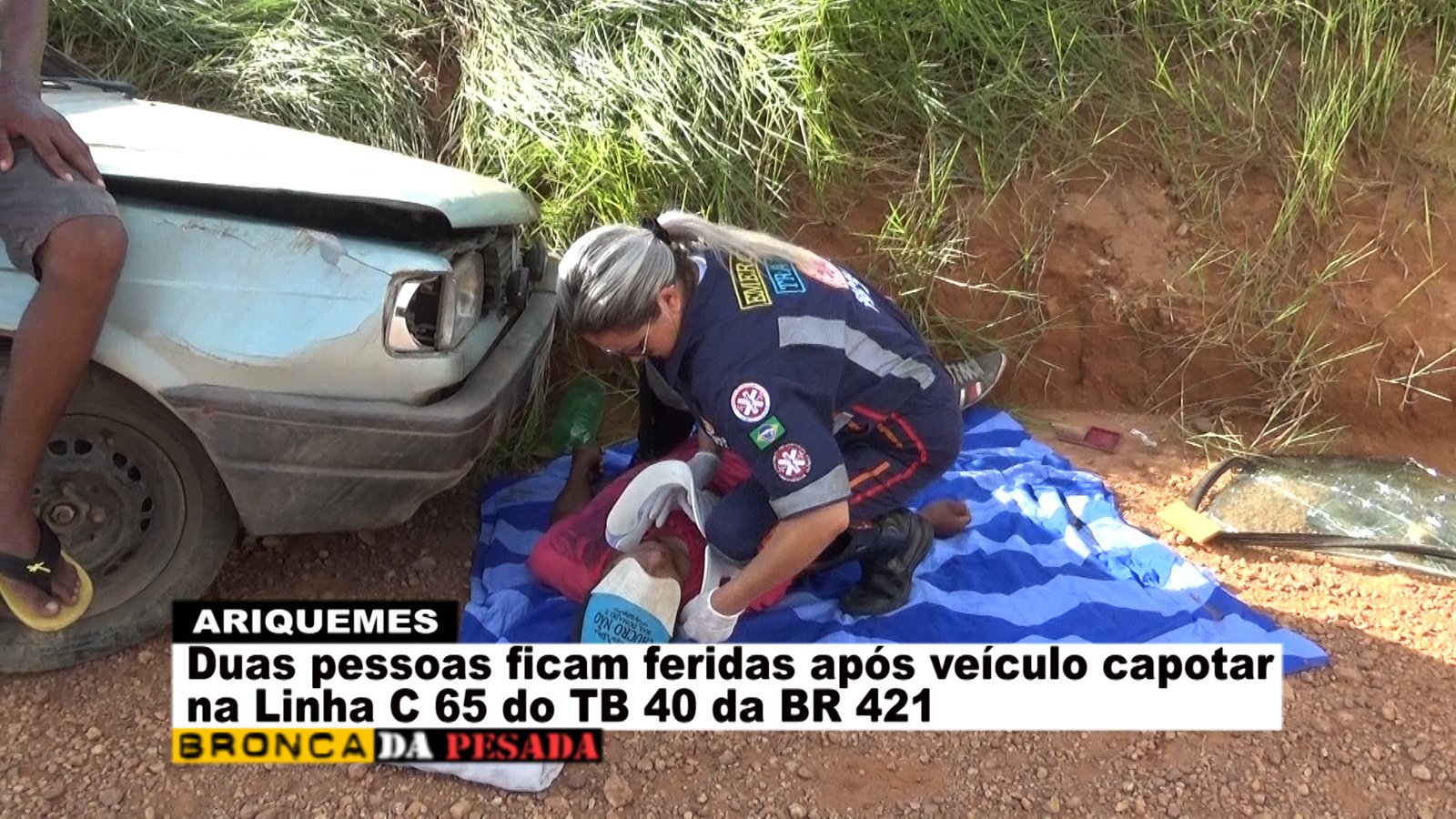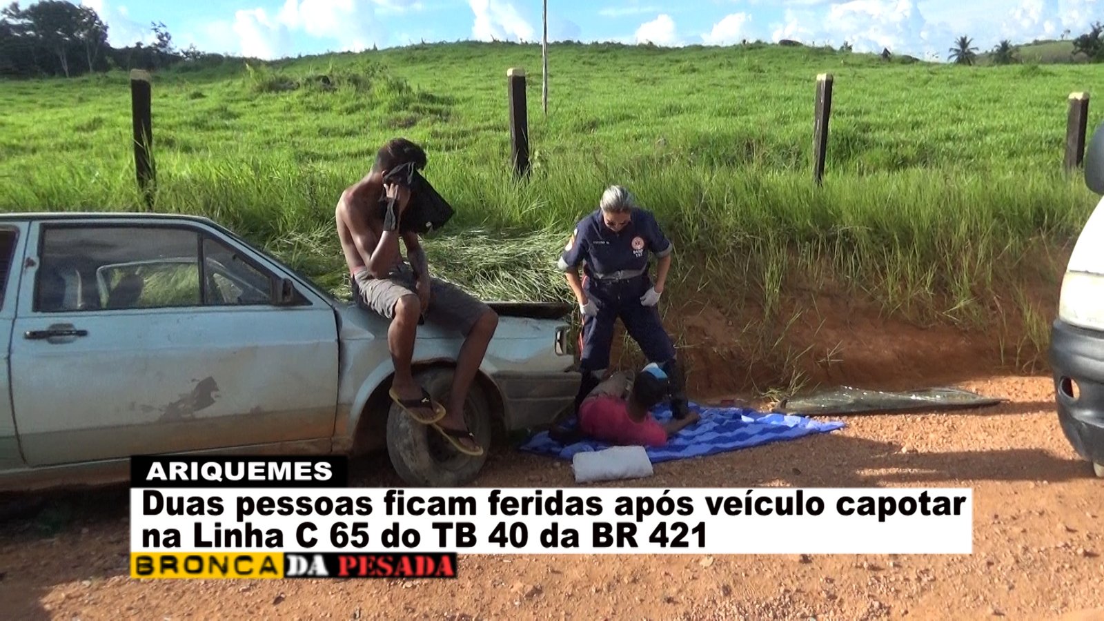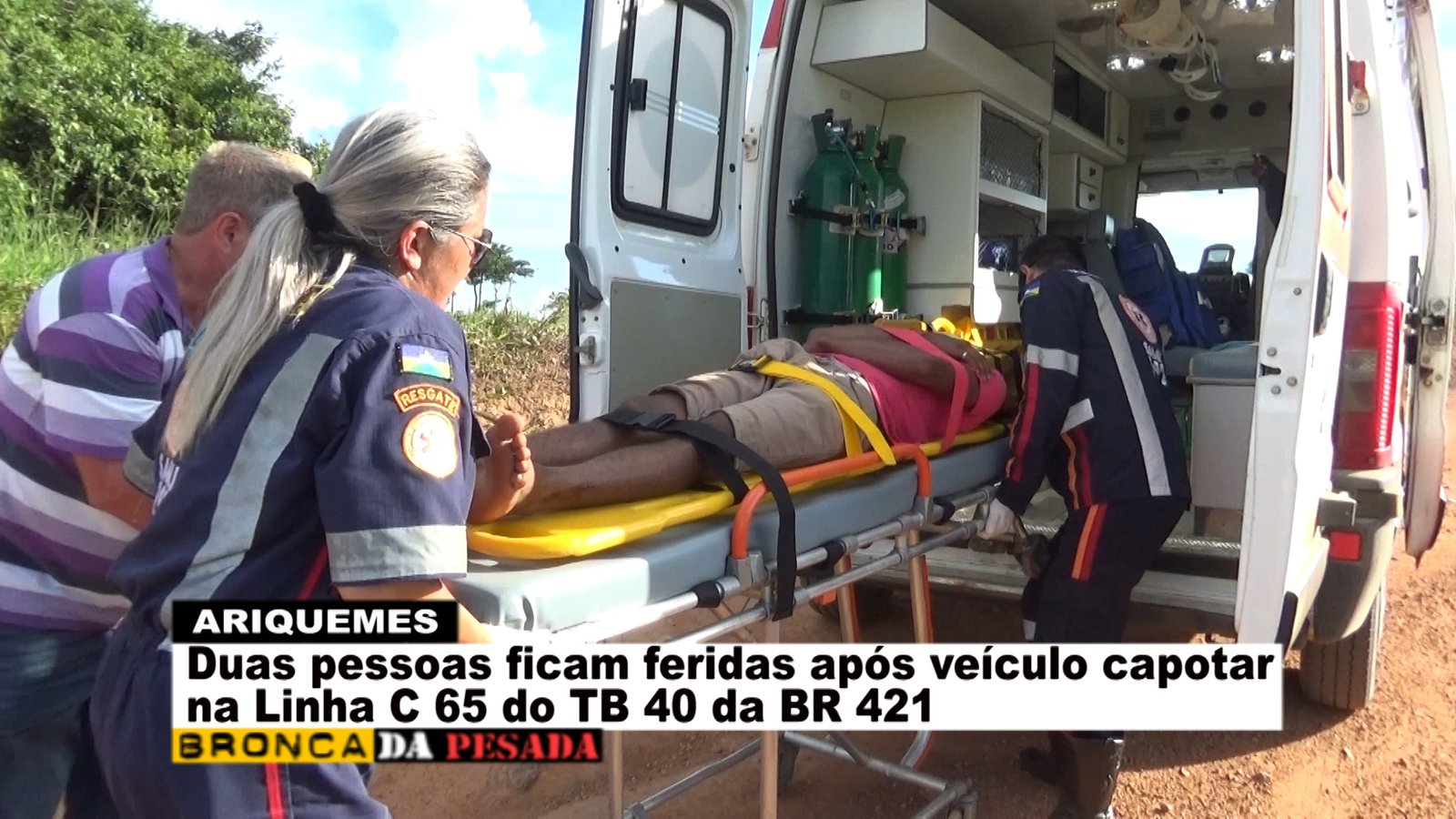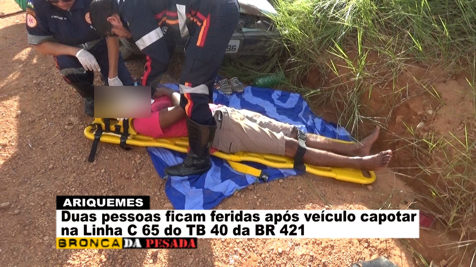 Na tarde deste sábado (09/04), a equipe do Serviço de Atendimento Móvel de Urgência (SAMU) foi acionada a comparecer na Linha C-65 no travessão B-40 da BR-421, pois segundo informações havia ocorrido um capotamento. Já no local os socorristas se depararam com uma das vítimas ao solo se queixando de dor na região da coluna e a outra vítima que já se encontrava em pé apresentando apenas escoriações leves. Logo os socorristas do SAMU começaram o procedimento de primeiros socorros à vítima que estava caída ao solo. Segundo uma das vítimas, esta relatou que o veículo da marca Gol modelo antigo veio a capotar após a barra de direção quebrar e o freio não funcionar no momento. Após o atendimento pré-hospitalar em um dos rapazes envolvidos no acidente, este foi encaminhado para o Hospital Regional de Ariquemes para receber cuidado médico especializado. Em entrevista concedida ao Canal 35 para o Programa Bronca da Pesada e site Ariquemes 190 a técnica de enfermagem Simone relatou que a vítima possivelmente sofreu uma fratura na escápula que esta localizada na parte superior das costas.