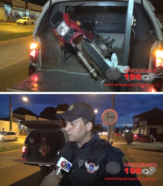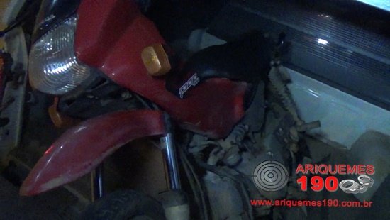Por volta das 18 horas desta segunda-feira (11/04), a guarnição da Polícia Militar da Patrulha Charlie foi acionada via Central de Operações a comparecer na estrada do lixão na Zona Rural, onde segundo informações haveria uma moto abandonada. Quando os policiais chegaram ao local se depararam com uma motoneta da marca Honda modelo Pop 100 da cor vermelha com placa NBS-4233 escondida em um matagal, mesma havia sido roubada conforme o Boletim de Ocorrência Policial (BOP) sob o nº 1029/2016 registrado na 3ª Delegacia de Polícia Civil de Ariquemes especializada na Repressão aos Crimes Contra o Patrimônio. Diante dos fatos, a motoneta foi conduzida para a 1ª Delegacia Geral de Polícia Civil de Ariquemes onde foi registrado o Boletim de Ocorrência Policial (BOP) sob o nº 3495/2016 para as devidas providências.