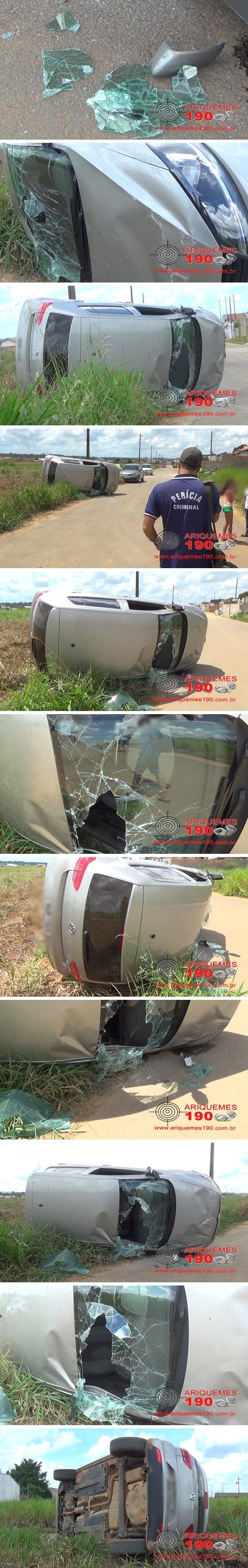 Por volta das 11h45min deste domingo (17/04), a guarnição da Polícia Militar foi acionada a comparecer na Rua Campo Mourão no Bairro Jardim Paraná em Ariquemes, onde segundo informações havia ocorrido um capotamento de carro. De imediato os policiais se deslocaram até o local onde constataram a veracidade das informações se deparando com um carro da marca Volkswagen da cor prata capotado fora da via. Segundo informações, a condutora do carro estaria transitando pela Rua Campo Mourão, quando em dado momento acabou perdendo o controle da direção do veículo, em seguida veio a capotar. A vítima foi encaminhada para o Hospital Regional de Ariquemes, pois a mesma apresentava algumas escoriações. A Perícia Técnica foi acionada e compareceu no local onde esteve realizando os trabalhos de praxe.