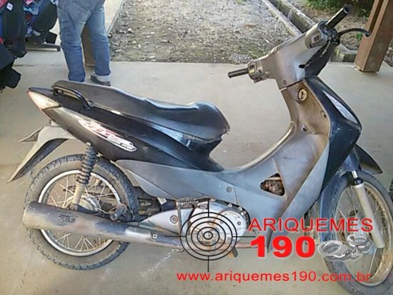 Por volta das 08 horas desta sexta-feira (29/04), as guarnições da Força Tática do 7° Batalhão da Polícia Militar deslocou-se até a Vila da Serraria localizada no Garimpo Massangana em Monte Negro para averiguar denúncias de que o elemento de nome Alonso da Conceição, autor do homicídio de Josiane Oliveira da Silva, de 15 anos ocorrido no dia 07/04/2016 estaria escondido em uma residência. Quando as guarnições chegaram ao local, realizaram cerco no referido vilarejo, vindo a localizar o barraco onde o elemento estaria. De imediato os Policiais adentraram o barraco, onde foi localizada uma motoneta da marca Honda modelo Biz Ks de cor preta com placa NDJ-1836, no entanto o elemento não fora localizado. A motoneta possuía restrição de furto conforme o Boletim de Ocorrência Policial (BOP) sob o n° 1281/2016 que foi registrado na 3ª Delegacia de Polícia Civil. Diante dos fatos, o veículo foi conduzido e apresentado na 1ª Delegacia Geral de Polícia Civil de Ariquemes onde foi registrado o BOP sob o n° 4043/2016 para as providências cabíveis.