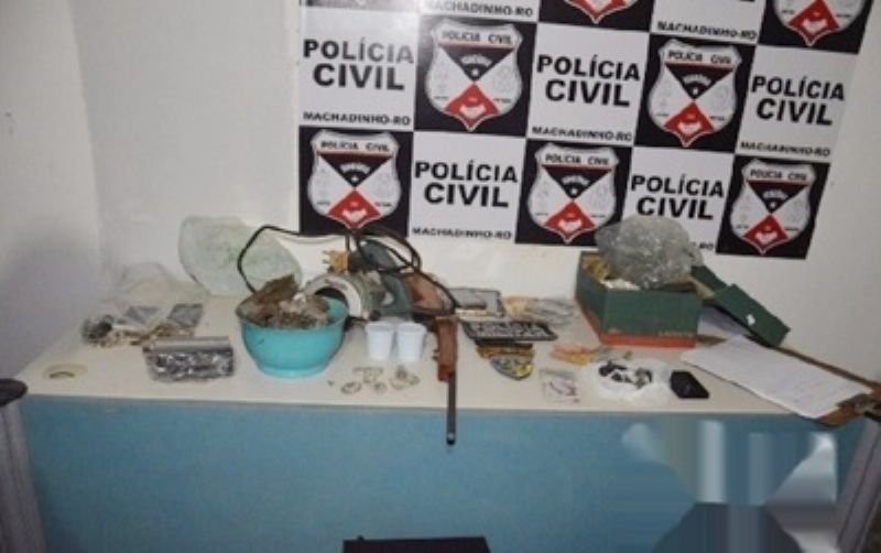 Por volta das 06 horas da manhã de sexta-feira (29/04), Policiais Civis, Militares e do Batalhão Ambiental em cumprimento a Mandado de Busca e Apreensão em detrimento a Operação Nêmesis, se deslocaram a uma residência suspeita, localizada na Rua Tucano, no Bairro Bom Futuro em Machadinho, onde dois elementos que estavam no interior da casa se recusaram a sair, sendo necessário que os Policiais arrombassem a porta. Quando os Policiais entraram na casa, o elemento J.A.R. de 28 anos, tentou sair pela porta dos fundos e ao ser abordado entrou em luta corporal com os Agentes, que usaram técnicas de imobilização para conter o marginal. Os Policiais Militares: José e Assunção, PM Ambiental Breno e o Policiais Civil Mário, ainda localizaram na residência o indivíduo T.A.R. de 24 anos e próximo a cerca da residência um marmitex amassado contendo 18 parangas de uma substância aparentando ser maconha, sendo que no aparelho celular de J. foi encontrada a foto de uma arma de fogo do tipo revólver, que foi furtado em uma residência no município, mas o elemento se recusou a dar maiores detalhes sobre a arma. Na confusão o Policial Civil Mário sofreu uma lesão na mão esquerda e precisou de atendimento médico. Mediante os fatos os elementos e o material apreendido foram apresentados a autoridade plantonista na 1ª Delegacia de Polícia Civil, onde foi registrada a ocorrência nº 1205/16, para as providencias que o caso requer.
