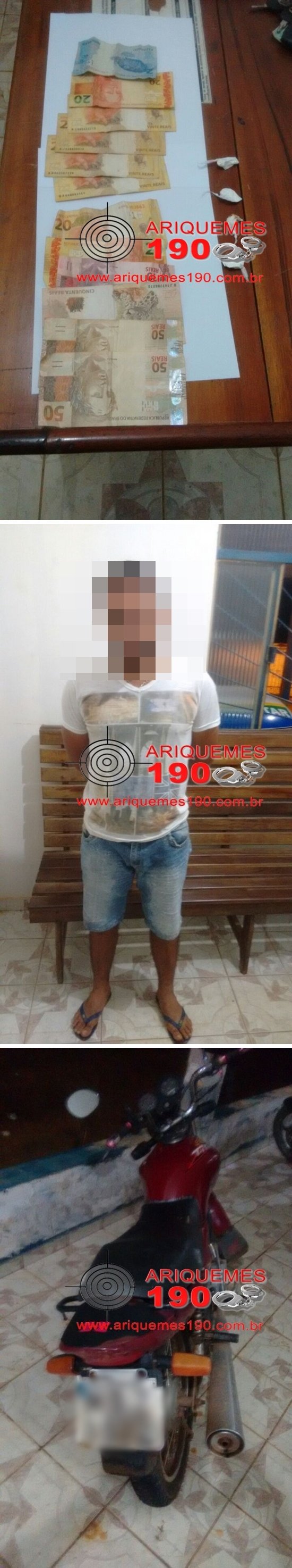 Por volta das 20 horas deste sábado (07/05), a guarnição da Polícia Militar composta pelo Sargento Carlos e o Soldado Nixon, estava em patrulhamento de rotina pela Av. Transcontinental em Alto Paraíso, quando em dado momento os Policiais avistaram o condutor da motocicleta da marca Honda modelo CG Titan KSE com placa NBZ 1872 de Ariquemes-RO em atitude suspeita. Logo os Militares deram voz de parada ao rapaz e em seguida ao ser realizado a abordagem de rotina foi encontrada no bolso de seu short quatro “petecas” de substância entorpecente aparentando ser cocaína. Diante dos fatos, os Policiais deram voz de prisão ao motociclista e o mesmo foi conduzido juntamente com as quatro porções de substância entorpecente para a 1ª Delegacia Geral de Polícia Civil de Ariquemes onde foi registrado o Boletim de Ocorrência Policial (BOP) sob o n° 4372/2016 para as providências cabíveis.