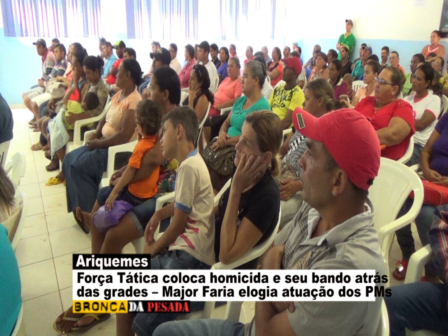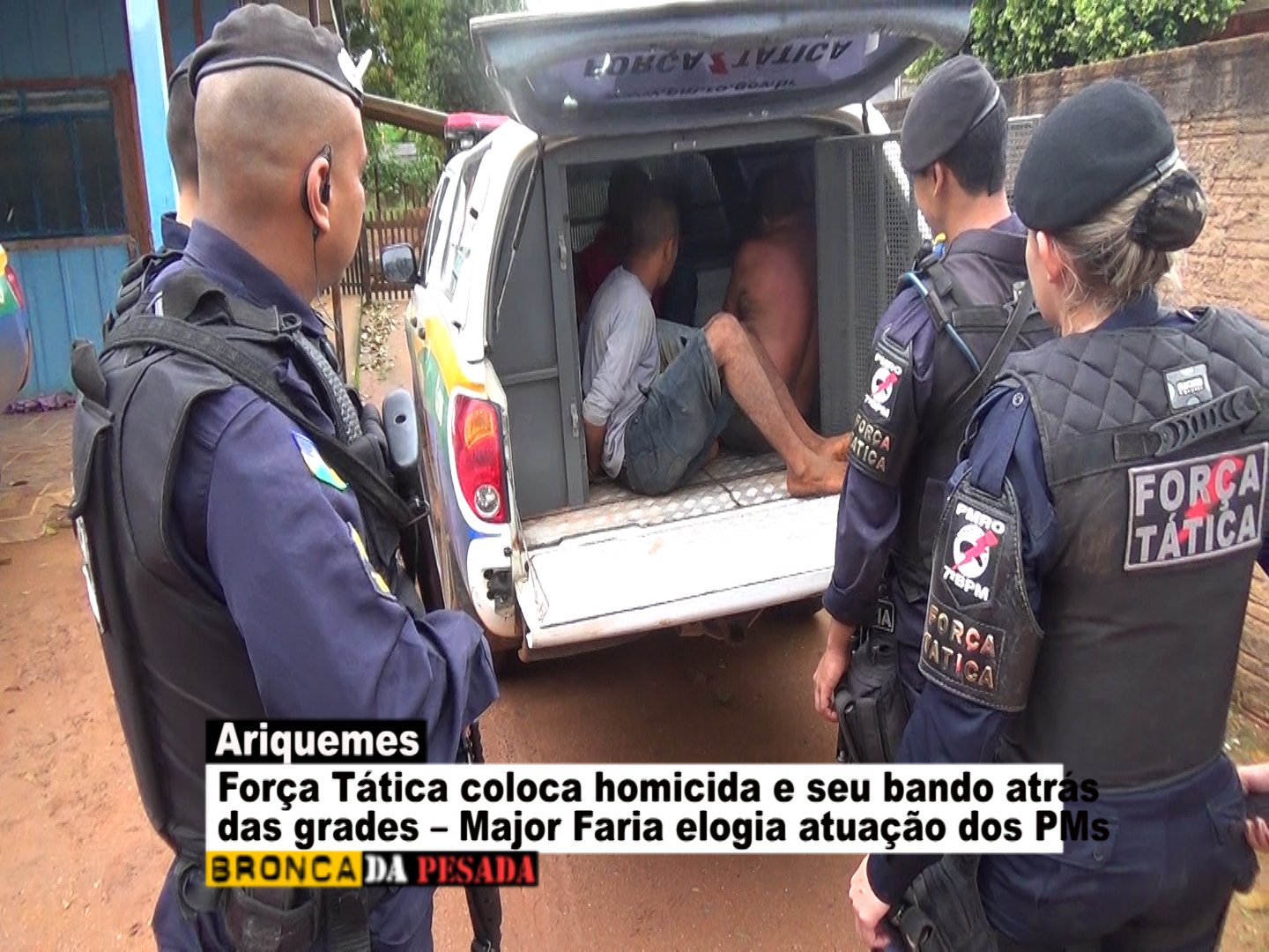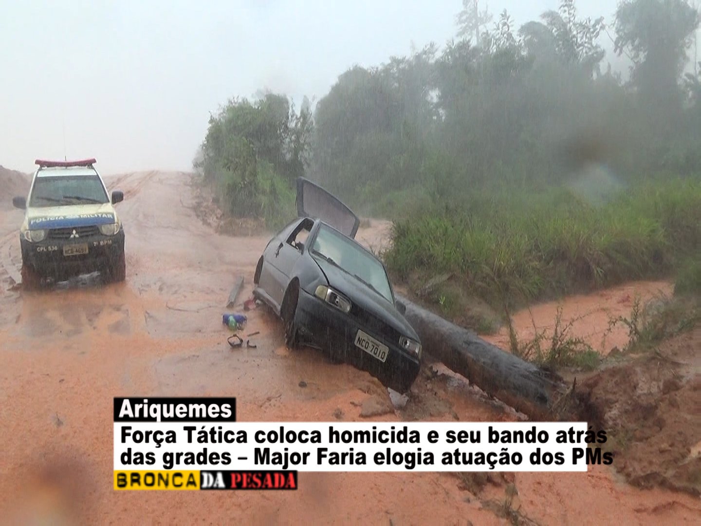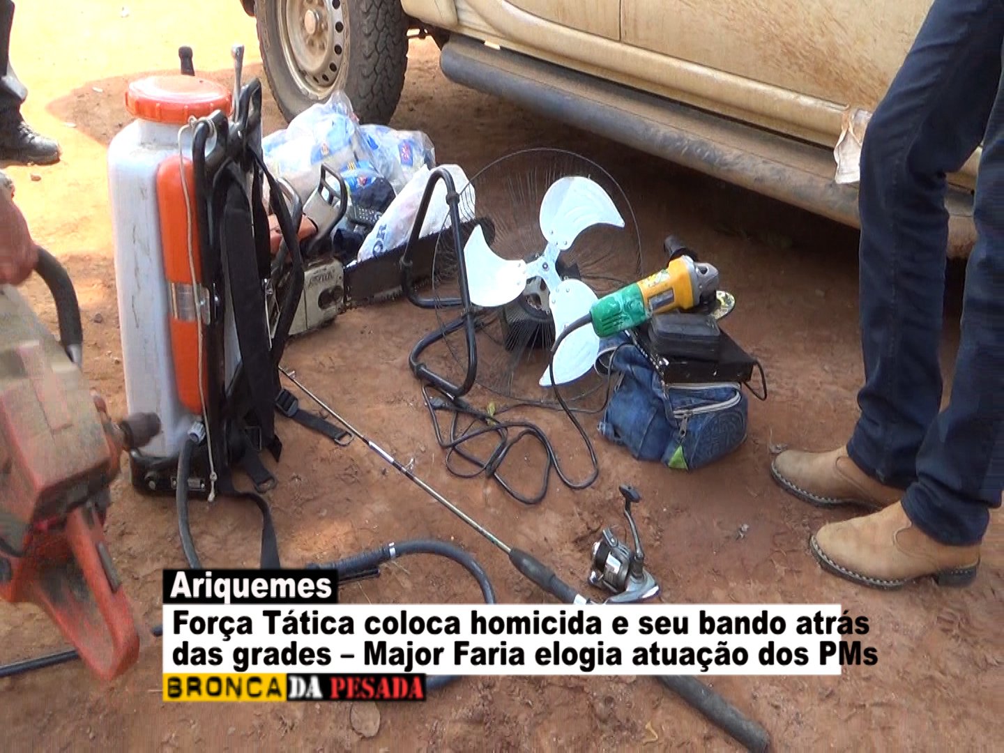 Em um belíssimo trabalho desencadeado pela Polícia Militar através da Força Tática no Garimpo Massangana, resultou na desarticulação de uma quadrilha que vinha aterrorizando agricultores na grande região de Ariquemes. O grupo teria praticado vários roubos, onde as vítimas eram humilhadas e ameaçadas de morte. Tudo indica que esses elementos teriam executado o agricultor Edilson Rosa Ferreira de 31 anos de idade, o qual estava repousando em sua residência localizada na Linha C-70, Km-35 da zona rural por volta das 22h40m deste domingo, 08/05, quando foi alvejado com um tiro no peito por assaltantes. Os elementos foram surpreendidos pela equipe da Força Tática no Garimpo Massangana na serraria do Piauí onde comemoravam os roubos. O bote foi certeiro, o local foi cercado e sete pessoas detidas, entre os elementos detidos foi localizado Alonso da Conceição, 19 anos, o qual executou sua namorada na manhã de quinta-feira, 7 de Abril de 2016, numa residência localizada na Rua Pérola, Bairro Nova União I em Ariquemes (RO). A vítima Josiane Oliveira dos Santos foi socorrida com vida pelo Serviço de Atendimento Móvel de Urgência (SAMU), mas morreu cerca de três horas depois de dar entrada no Hospital Regional. Alonso era quem comandava o bando, o qual teria praticado mais de 20 roubos. Na residência foram encontrados um veículo roubado, armas e vários objetos de procedência duvidosa. Os moradores do Garimpo elogiaram o comandante do 7º BPM Major Farias pela ação que resultou na prisão dos suspeitos e do homicida Alonso. Em entrevista ao Canal 35, Major Faria elogiou todos os PMs do 7º BPM pela dedicação e empenho em qualquer missão que sejam enviados, sempre mostrando resultados. Informações levantadas pelo site Ariquemes190 comprova essa afirmação do comandante do 7º BPM, pois a equipe da Força Tática perdeu dias de sono em busca de pistas que levassem aos elementos. Ao tomarem conhecimento que o bando estaria na localidade, não pensaram duas vezes, mesmo sabendo que se trava de elementos perigosos, sabiam que não havia tempo de pedir reforço e cercaram o local obtendo êxito na ação. Todos foram apresentados na Delegacia de Polícia Civil de Ariquemes.