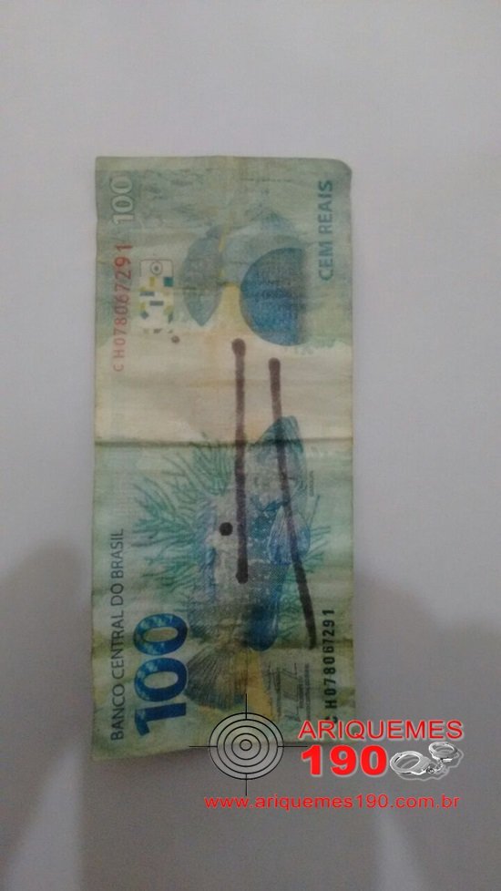Por volta das 16h40min desta sexta-feira (13/05), a guarnição da Polícia Militar composta pelos Soldados: Melo e Max, foi acionada a comparecer na Av. Jorge Teixeira em Alto Paraíso, pois segundo informações havia um adolescente tentando trocar uma nota falsa de R$ 100,00 em um estabelecimento comercial. Quando os Policiais chegaram ao local constataram a veracidade dos fatos se deparando com o adolescente e a nota falsa. Diante dos fatos, os Policiais fizeram contato com a mãe do menor para acompanha-lo até a Delegacia Especializada no Atendimento a Mulher de Ariquemes onde foi registrado o Boletim de Ocorrência Policial (BOP) sob o n° 768/2016 para as providências cabíveis.