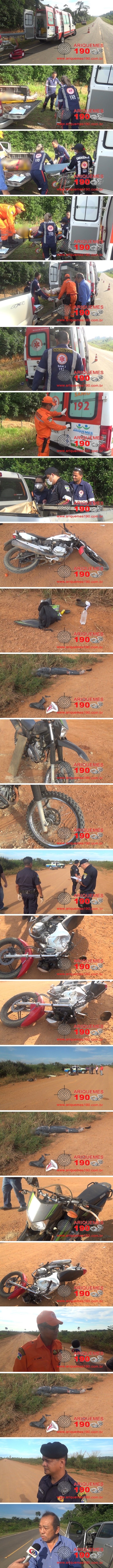 Por volta das 6h30m desta segunda-feira 16/05, a guarnição da Polícia Militar foi acionada a comparecer na RO-257 sentido Machadinho do Oeste, pois segundo informações no local havia acontecido um acidente de trânsito com uma vítima fatal. De imediato os Militares se deslocaram ao endereço informado, onde ao chegar constataram a veracidade das informações se deparando com a vítima ainda não identificada em óbito e as motocicletas sendo uma da marca Honda, modelo Titan de cor vermelha e a outra Yamaha, modelo Lander de cor preta. Segundo uma testemunha, o acidente aconteceu em uma colisão envolvendo as duas motocicletas, sendo que além da vítima fatal, outras duas pessoas ficaram feridas. Um senhor que passava pelo local socorreu uma vítima na carroceria de sua caminhonete e a outra vítima dentro do veículo. Durante o trajeto para Ariquemes, o cidadão encontrou o SAMU que juntamente com o Corpo de Bombeiros atendeu as vítimas e conduziu as mesmas ao Hospital Regional de Ariquemes para receber cuidados médicos especializados. A Polícia Técnico-Científica (POLITEC) compareceu no local onde realizou os trabalhos periciais e posteriormente liberou o corpo para a funerária de plantão realizar os procedimentos de sepultamento.