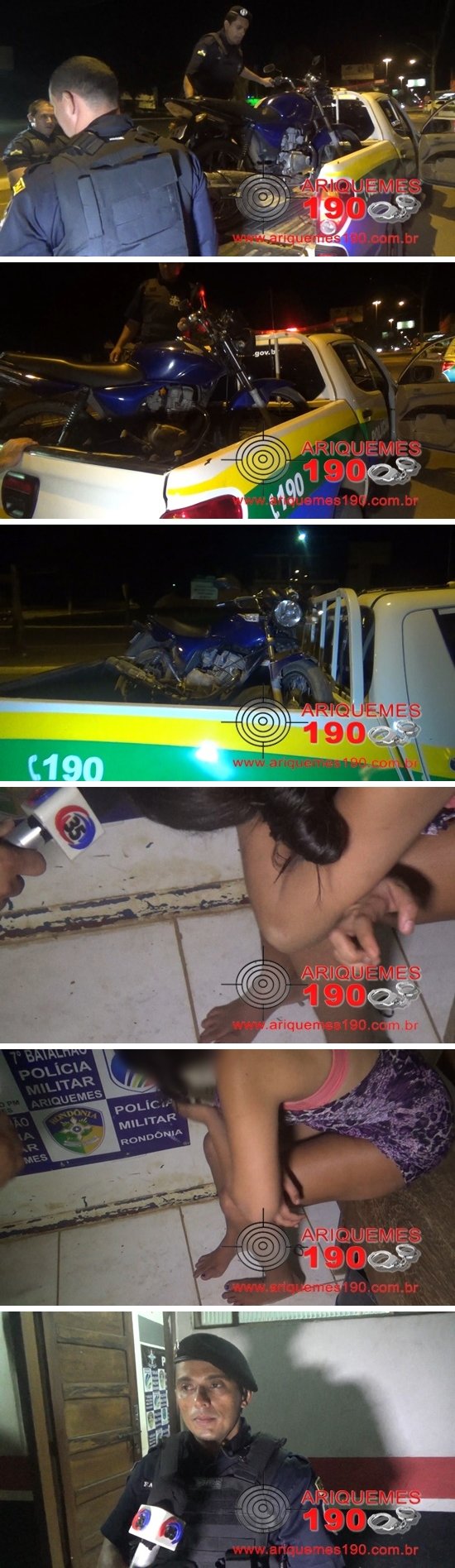 ARIQUEMES: Adolescente embriagada é apreendida com moto furtada na Av. Tancredo Neves