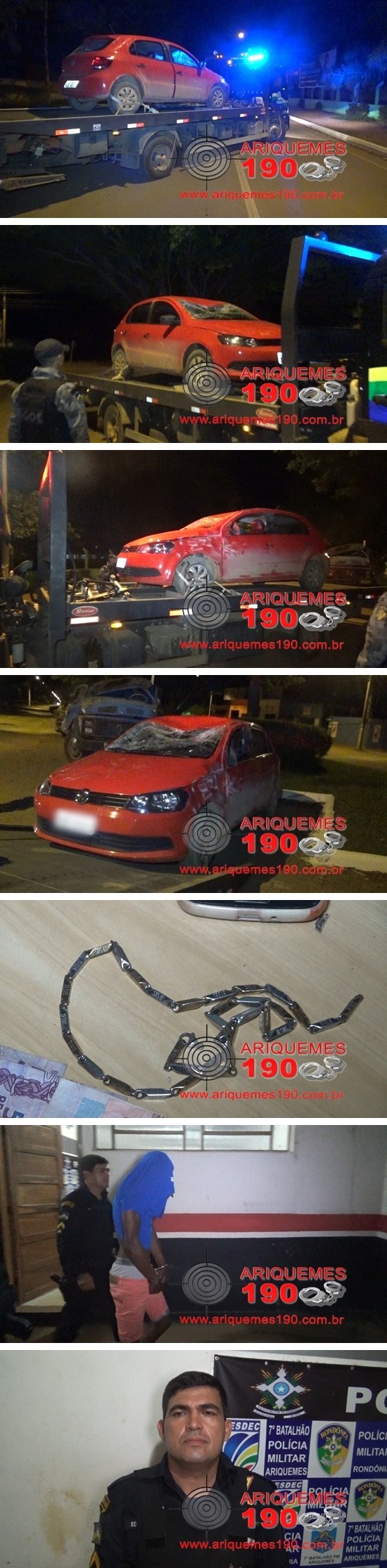 Por volta das 23 horas deste sábado (21/05), o Grupo de Operações Especiais (GOE) foi acionado a comparecer no Travessão B-40 Sul na Zona Rural de Ariquemes, onde segundo informações havia um veículo capotado. Já no local os Policiais constataram a veracidade das informações se deparando com o veículo da marca Volkswagen modelo Gol de cor vermelho apresentando muitas avarias devido ao capotamento. Logo os Policiais realizaram consulta via Central de Operações e foi constatado que o veículo havia sido roubado horas antes em uma residência no Bairro 25 de Dezembro. O guincho do quartel foi acionado para remover o veículo do local. Diante dos fatos, o veículo sem a chave de ignição foi apresentando na 1ª Delegacia Geral de Polícia Civil de Ariquemes onde foi registrado o Boletim de Ocorrência Policial (BOP) sob o n° 4893/2016 para as providências cabíveis.