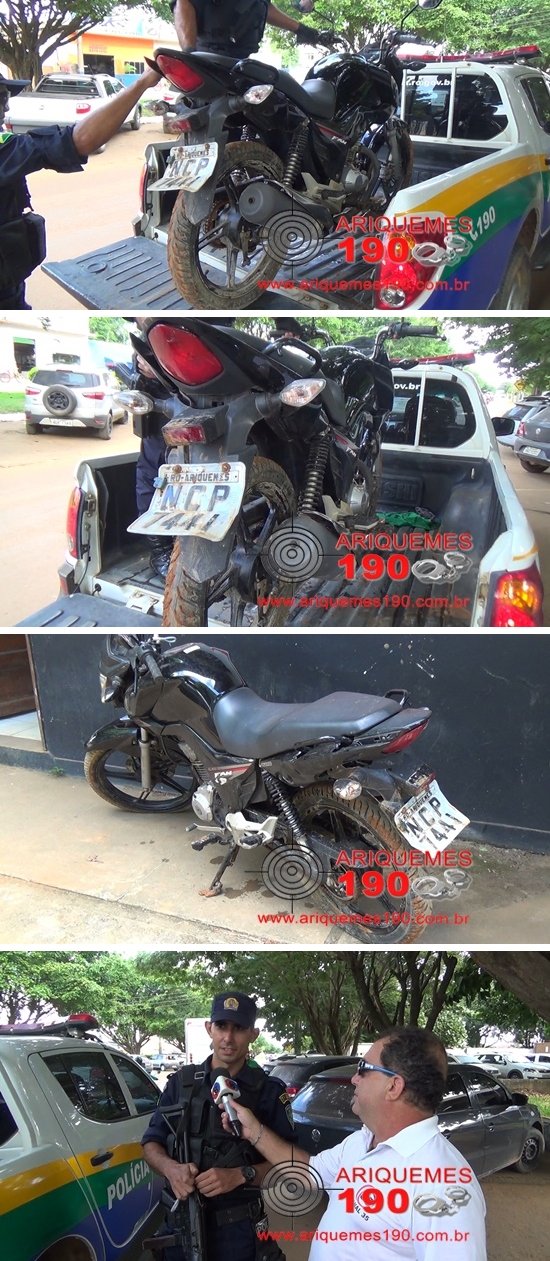Por volta das 15h30min desta terça-feira (24/05), um grupo de amigos tomava banho nas águas do Rio Branco, localizado na RO-257, quando localizaram uma motocicleta da marca Honda, modelo CG-160 Fan de cor preta, placa NCP-7441/Ariquemes com a chave na ignição. Os próprios jovens retiraram o veículo das águas e acionaram os Policiais Militares da Patrulha Delta: Edmilson, Antônio Marcos e Odenilson, que conduziram a moto para a DP. A guarnição realizou consulta veicular e constatou que a referida motocicleta era produto de roubo. O veículo foi apresentado à autoridade plantonista na Delegacia de Polícia Civil, que já trabalha com o objetivo de localizar e restituir a moto ao seu verdadeiro proprietário.