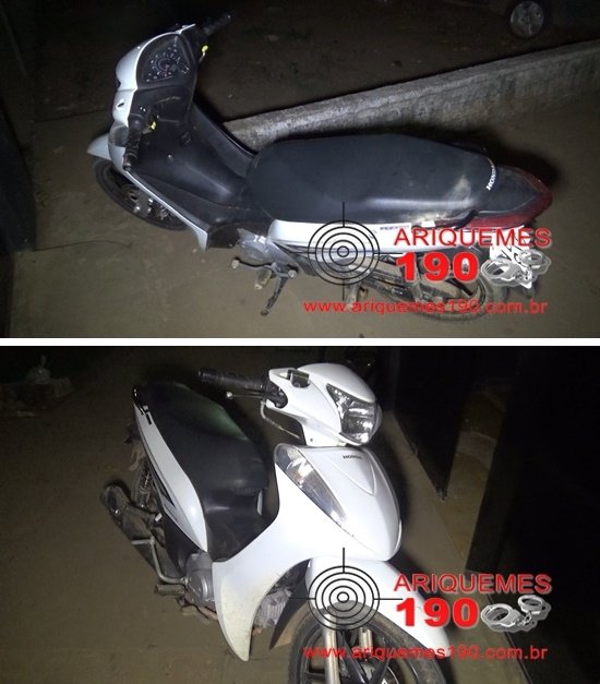 Por volta das 19h20min desta quinta-feira (26/05), o Grupo de Operações Especiais (GOE) foi acionado a comparecer na 8ª Rua do Setor 10 em Ariquemes, pois o comunicante havia localizado uma motoneta roubada. Já no local os Policiais foram informados pelo esposo da vítima que a motoneta da marca Honda modelo Biz de cor branca com placa NCL-2315 havia sido roubada na quarta-feira (25/05) conforme BOP sob o n° 1612/2016. O cidadão ainda informou aos Policiais que estava transitando pelo Setor 10, quando na 8ª Rua avistou a motoneta, momento em que o mesmo tentou abordar os dois elementos batendo o carro no lado direito da motoneta. Após os infratores caírem ao chão, os mesmos se evadiram do local tomando rumo ignorado. Diante dos acontecimentos, os Policiais realizaram patrulhamento pelas proximidades, porém nada foi localizado. Diante dos fatos, a motoneta foi conduzida para a 1ª Delegacia Geral de Polícia Civil de Ariquemes onde foi registrado o Boletim de Ocorrência Policial (BOP) sob o n° 5023/2016 para as providências cabíveis. A motoneta apresentava alteração em suas letras e numeração.