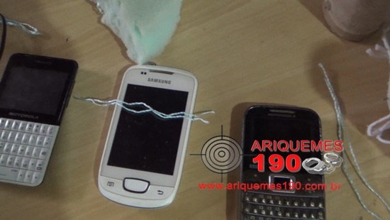 Por volta das 15h00min desta quarta-feira (01/06), a guarnição da Polícia Militar foi acionada a comparecer na Casa de detenção localizada na Avenida Capitão Silvio no Setor De Grandes Áreas em Ariquemes, pois segundo informações um indivíduo havia jogado uma sacola para dentro do presídio. No local os Militares entraram em contato com um PM, este relatou que se encontrava em ronda na guarita da guarda externa, quando se deparou com um envolto a qual havia sido arremessado no pátio do albergue. Logo que o PM analisou o invólucro que se encontrava amarrado com cones de papelão, espuma e barbantes foram encontrados em seu interior um carregador Samsung de cor preta e quatro aparelhos celulares, sendo um celular da marca Motorola modelo EX119, um da marca Motorola EX117, um Blu de cor branca com detalhe em azul e um Samsung modelo GTS5570. O chefe de segurança do presídio local constatou-se que havia fotografias na memória interna de um dos celulares, nestas fotografias foram reconhecidos três apenados que se encontram cumprindo pena no Albergue. Uma das fotografias foi tirada de dentro da cela no mesmo dia do fato. Diante dos fatos, os objetos foram encaminhados e apresentados na 1ª Delegacia Geral de Polícia Civil onde foi registrado o Boletim de Ocorrência Policial (BOP) sob n° 5224/2016 para as providências cabíveis.