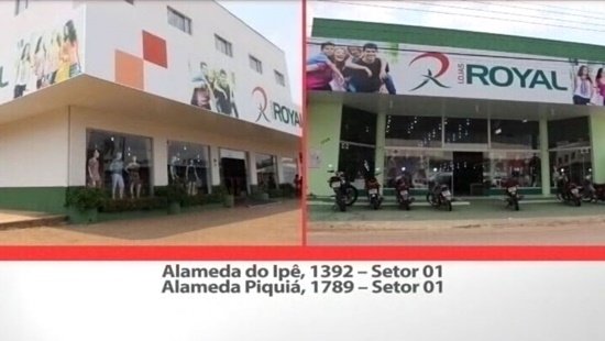 Aproveite esta grande oportunidade! A Quinzena do crediário da Lojas Royal. Todo o estoque em 7 vezes sem juros no crediário próprio. Comece a pagar em 90 dias em 3 vezes, 60 dias em 5 vezes ou todo o estoque com 15% de desconto nas compras à vista. Venha você também nesta quinzena fazer o seu crediário e economizar com a Lojas Royal. Agora com duas lojas para melhor lhe atender. Lojas Royal uma sempre perto de você. Alameda do Ipê, nº 1392 e Alameda Piquiá n º 1789, ambas no Setor 01.
