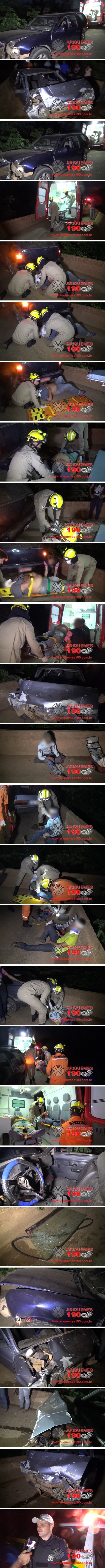 Por volta das 18h30min desta sexta-feira (10/06), o Corpo de Bombeiros foi acionado a comparecer na ponte da RO-257 sentido Machadinho a 12 km de distância de Ariquemes, pois segundo informações havia acontecido um acidente de trânsito. De imediato os Bombeiros se deslocaram até o local onde se deparam com três vitimas apresentando ferimentos graves. Imediatamente os Bombeiros prestaram os primeiros socorros à vítima que apresentava maior gravidade, utilizando o colar cervical e a imobilizando. Em seguida os outros envolvidos no acidente receberam o atendimento pré-hospitalar, sendo que ambos foram imobilizados e colocados na Unidade de Resgate do Corpo de Bombeiros onde foram conduzidas ao Hospital Regional de Ariquemes para receber cuidados médicos especializados. O acidente envolveu um veículo da marca Chevrolet modelo Blazer DLX e um veículo marca Monza GLS. Segundo informações levantadas no local, o condutor que seguia sentido Machadinho estava terminando de passar a ponte, momento em que houve a colisão frontal com o outro veículo que vinha sentido Ariquemes. A Polícia Militar foi acionada e compareceu ao local onde esteve coletando os dados para o registro do BOP. A equipe da Perícia Técnica foi acionada e compareceu no local onde realizou os trabalhos de praxe.