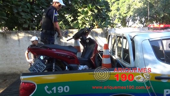 Por volta das 07 horas desta quarta-feira (15/06), a Central de Operações (C.O.) do 7º BPM foi informada através de uma ligação feita pela testemunha M.R. que na 4ª Rua do Setor Rota do Sol, havia uma motocicleta abandonada em meio a um matagal. Os Policias Militares da Patrulha de Trânsito (PTran): A. Miranda, Cristina, Jéssica e Lacerda, foram para o local indicado e com a ajuda da testemunha e de alguns populares localizaram a motoneta da marca Honda, modelo Biz de cor vermelha, placa NBZ-9453/Ariquemes, furtada no último dia 15 de maio de 2016, conforme ocorrência nº 1481/16, registrada na Delegacia de Patrimônio. A motoneta estava em baixo de uma árvore em meio ao mato com a placa quase arrancada, sem a chave e com o lacre rompido. O veículo foi apresentado autoridade plantonista na Delegacia de Repressão aos Crimes Contra o Patrimônio, onde foi registrada a ocorrência nº 1809/16, para as devidas providências.