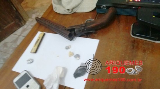 Por volta das 23 horas de quinta-feira (15/06), os Policiais Militares: Ribeiro, Laís e Silva Alves realizavam patrulhamento de rotina pelas ruas da cidade, quando avistaram um indivíduo de 17 anos, pilotando uma motocicleta da marca Honda, modelo CB 300 de cor azul, placa NQJ-6316/Ariquemes, tendo como carona o sujeito W.A.C. de 20 anos. Com o menor de 17 anos, que pilotava a referida moto, a guarnição encontrou uma arma de fogo do tipo Garrucha de calibre 28 mm com uma munição intacta. Com o carona os Policiais apreenderam duas parangas contendo uma substância aparentando ser crack, três parangas com algo que parece ser maconha e um saquinho contendo algo semelhante ao Ácido Bórico. Mediante os fatos a dupla foi apresentada a autoridade plantonista na Delegacia Geral em Ariquemes, onde foi registrada a ocorrência nº 5736/16, para as medidas cabíveis.