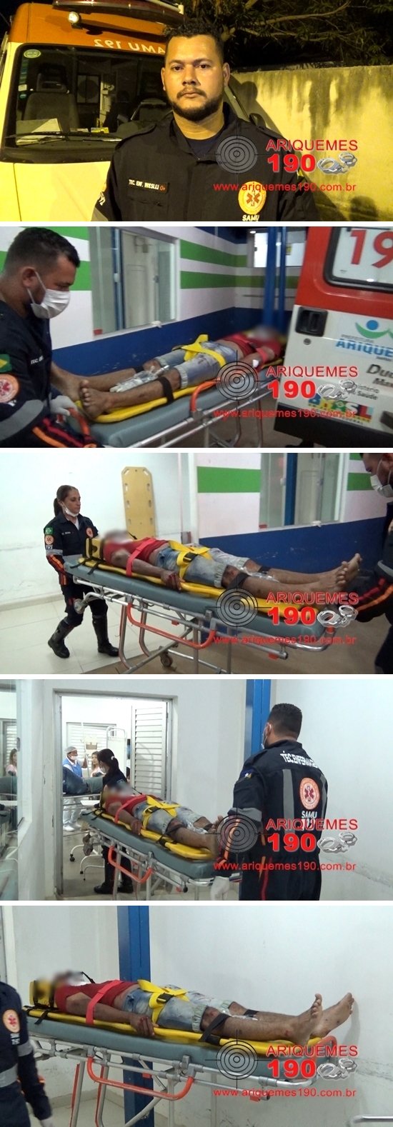 Por volta das 19h30min deste domingo (19/06), as equipes do Serviço de Atendimento Móvel de Urgência (SAMU) e do Corpo de Bombeiros foram acionadas a comparecer na Avenida Jaru no Bairro BNH em Ariquemes, pois segundo informações havia um rapaz que havia caído de moto. Logo que chegaram ao local os socorristas e os Bombeiros constataram que realmente havia um rapaz ferido caído ao solo, porém não encontraram nenhuma motocicleta ou capacete. De imediato as equipes prestaram os primeiros socorros à vítima, utilizando o colar cervical e a imobilizando. Em seguida o rapaz foi encaminhado para o Pronto Socorro do Hospital Regional de Ariquemes. Em entrevista concedida ao Canal 35 e Site Ariquemes 190 o Técnico de Enfermagem Weslei relatou que a vítima sofreu dois cortes profundos na cabeça, possivelmente seria um traumatismo cranioencefálico (TCE). A vítima também apresentava alguns dentes quebrados. O socorrista não soube informar o que aconteceu com o rapaz, devido à vítima estar desorientada e confusa na hora do atendimento pré-hospitalar (APH).