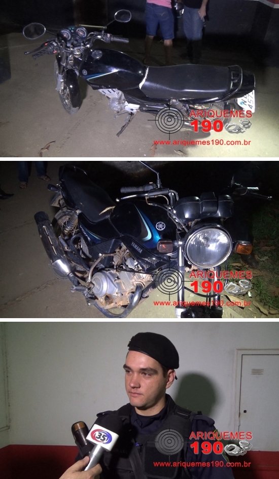 Por volta das 20h45min desta quarta-feira (22/06), a guarnição da Polícia Militar formada pelos Soldados: Andrade, Raposo e Moraes, estava em patrulhamento pela Praça do Setor 09 de baixo, momento em que se deparou com dois homens, sendo que cada um estava em uma motocicleta. Os Militares ao realizarem abordagem nos indivíduos constataram após consultar as placas com apoio da Central de Operações que a motocicleta da marca Yamaha modelo YBR 125 de cor preta com placa NDZ 4573 era produto de furto/roubo. Segundo o condutor do veículo, este informou aos Policiais que comprou a moto fazia 18 dias em um sítio por intermédio de seu irmão. O rapaz apresentou a documentação que dizia ser da motocicleta, porém os PMS ao checarem constataram que o documento pertencia à outra motocicleta. O agente não soube explicar sobre o documento, apenas mencionou que foi entregue a ele no dia da compra do veículo. Diante dos fatos, o condutor juntamente com a motocicleta foram conduzidos e apresentados na 3ª Delegacia de Polícia Civil de Ariquemes especializada na Repressão aos Crimes Contra o Patrimônio onde foi registrado o Boletim de Ocorrência Policial (BOP) de n° 1882/2016 para as providências cabíveis.