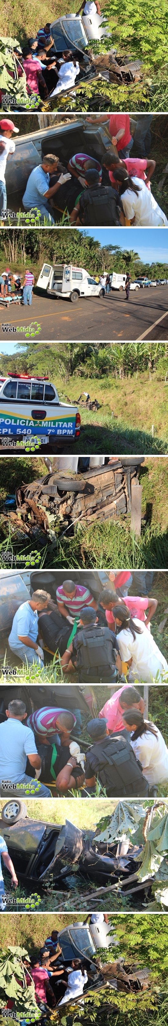 CACAULÂNDIA: Família fica ferida em capotamento na RO-140