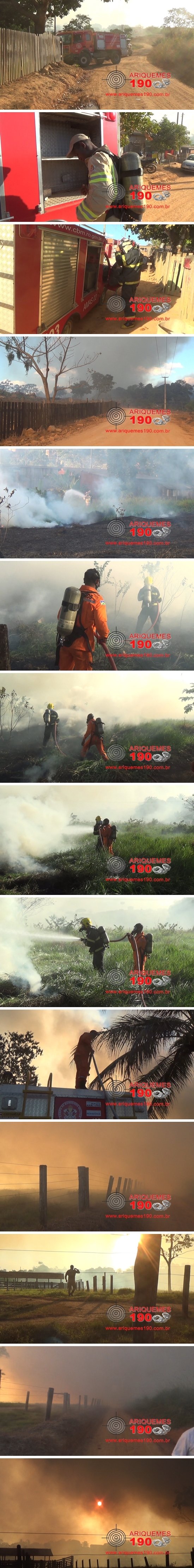 ARIQUEMES: Bombeiros evitam que fogo descontrolado em pasto destruísse residências