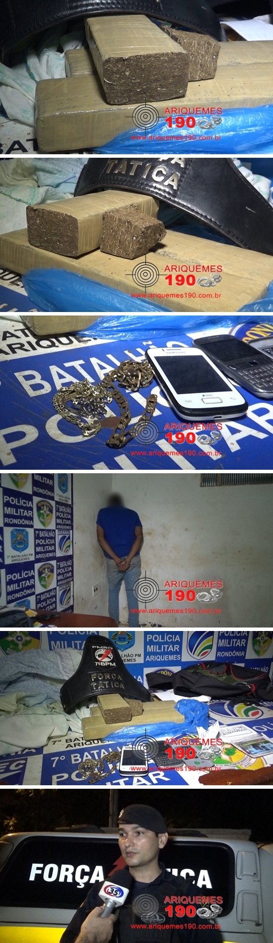 Por volta das 19h45min desta quinta-feira (30/06), a guarnição da Polícia Militar da Força Tática estava em patrulhamento pelas Avenidas JK, Guaporé e Machadinho do Setor 06 em Ariquemes, momento em que se deparou com um mototaxista em alta velocidade transportando um jovem. Devido o excesso de velocidade permitida na via, os Policiais decidiram realizar a abordagem nos indivíduos com o intuito de orientar o motorista para reduzir a velocidade, porém logo que os Militares deram voz de parada com sirene acionada e giroflex ligado, o mototaxista acabou ignorando a ordem. Diante da recusa em parar dos indivíduos após várias tentativas, os Militares decidiram novamente dar voz de parada, porém os mesmos só pararam quando a guarnição emparelhou a viatura ao lado da motocicleta. Durante revista nos agentes, a Força Tática localizou no interior da bolsa do rapaz tabletes de uma erva que possivelmente seriam maconha, aproximadamente 2 quilos. Segundo o adolescente, ele havia comprado a droga em Mato Grosso pagando com a quantia de cinco mil reais e trouxe até Ariquemes para realizar venda. Diante dos fatos, o condutor e o menor infrator foram conduzidos e apresentados juntamente com a droga na 1ª Delegacia Geral de Polícia Civil de Ariquemes onde foi registrado o Boletim de Ocorrência Policial (BOP) de n° 6245/2016 para as devidas providências.