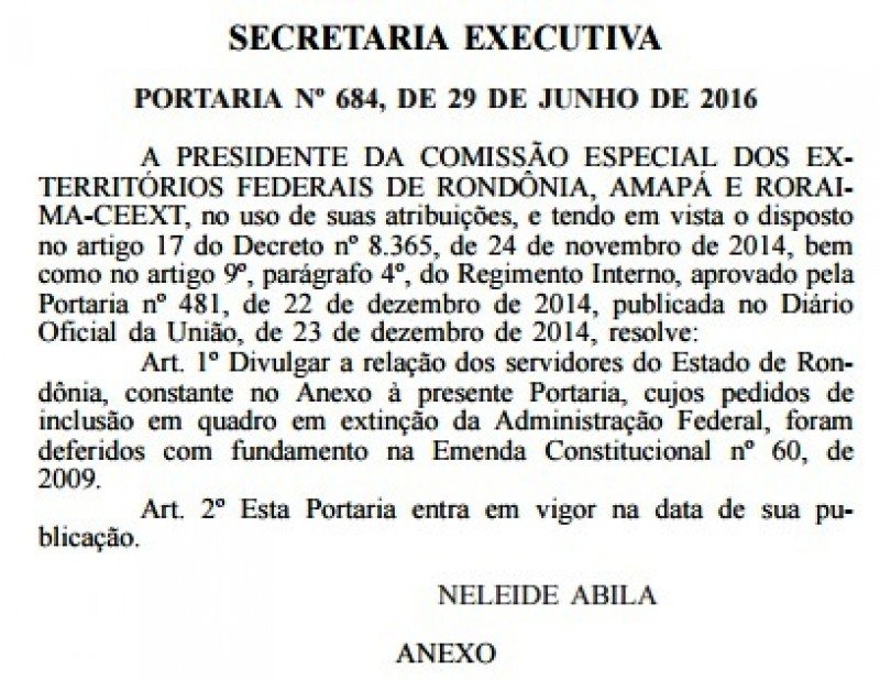 O Diário Oficial da União do dia 29 de junho publicou mais uma portaria com uma lista de servidores beneficiados pela transposição, que passarão a receber pela folha do governo federal.